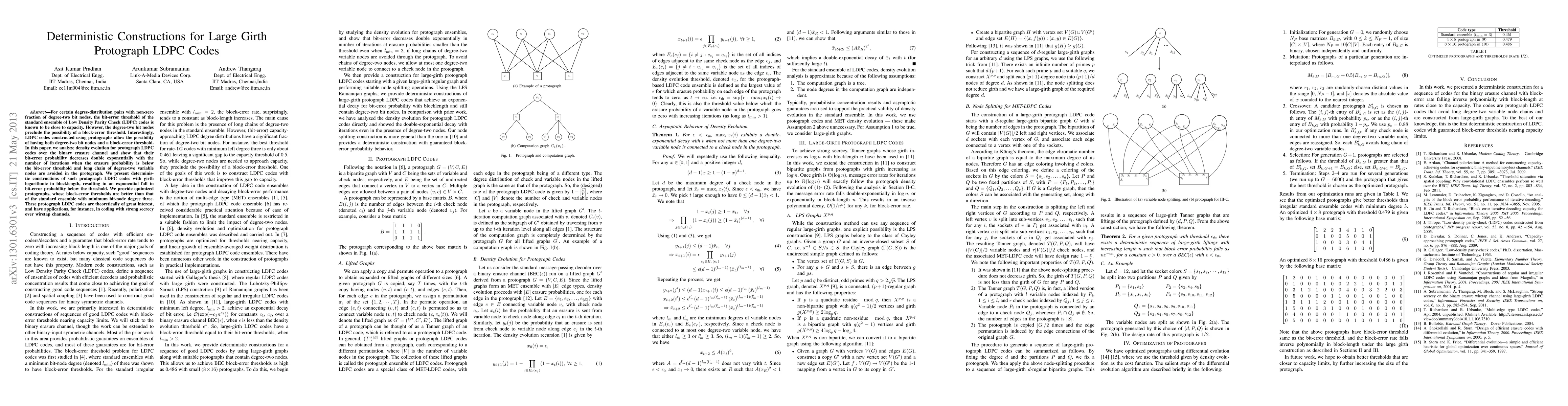 This paper investigates protograph LDPC codes that maintain both degree-two bit nodes and a block-error threshold, achieving double exponential bit-error probability reduction. It presents deterministic constructions for these codes, optimizing them to outperform standard ensembles and demonstrating their potential in applications like wiretap channels.