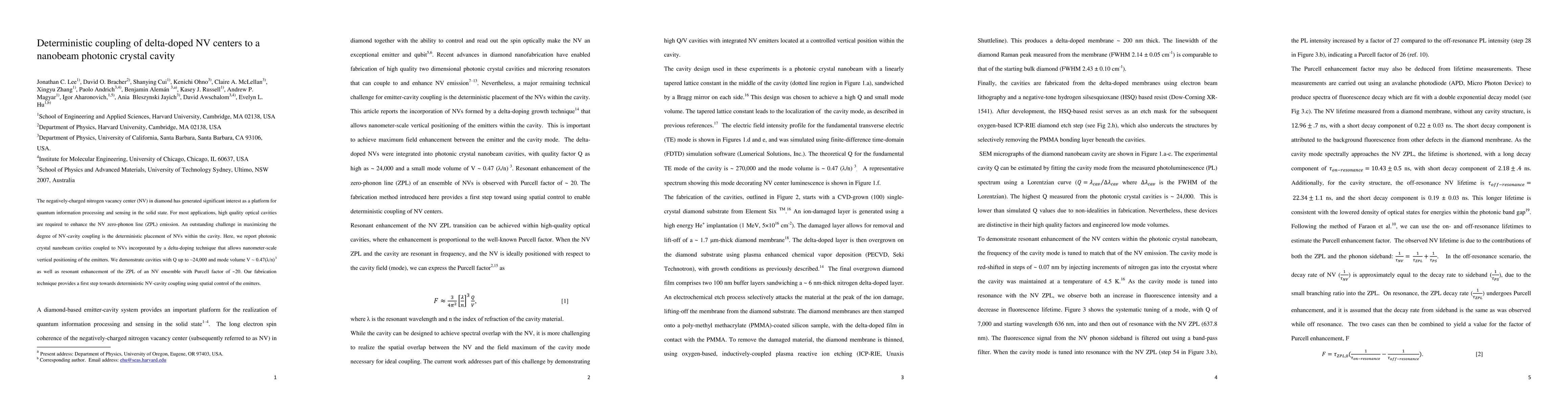 This paper reports the deterministic coupling of delta-doped nitrogen vacancy (NV) centers in diamond to photonic crystal nanobeam cavities, achieving high-quality optical cavities with Q up to ~24,000 and a Purcell factor of ~20, marking a significant step towards precise NV-cavity integration.