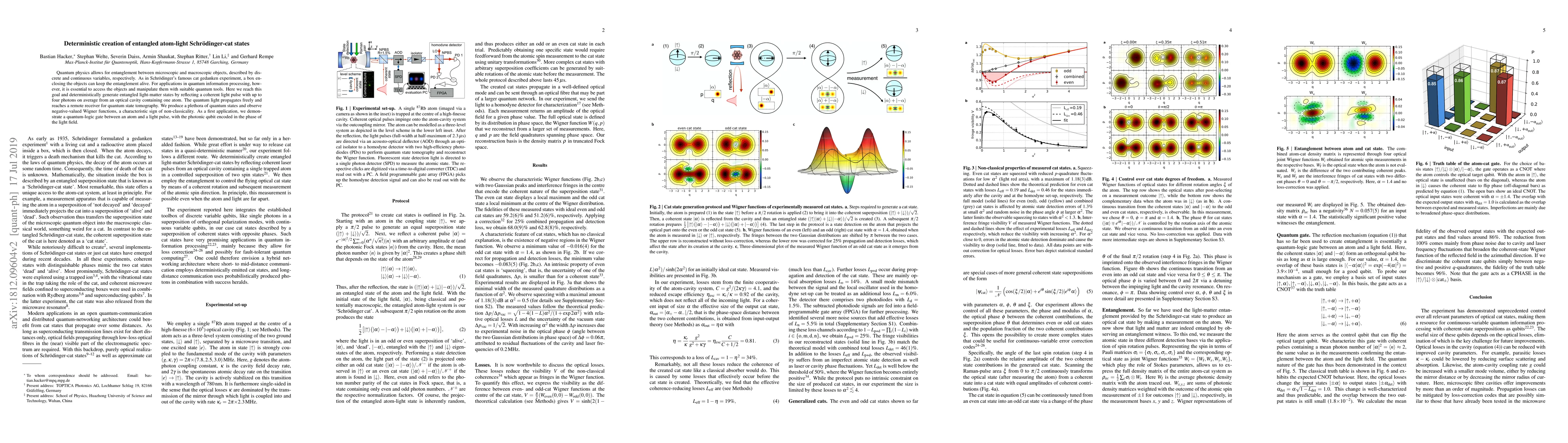 This paper reports the deterministic creation of entangled atom-light Schrödinger-cat states by reflecting a coherent light pulse from an optical cavity containing a single atom. The study demonstrates the generation of a variety of quantum states, including non-classical states with negative-valued Wigner functions, and showcases a quantum-logic gate between the atom and the light pulse.