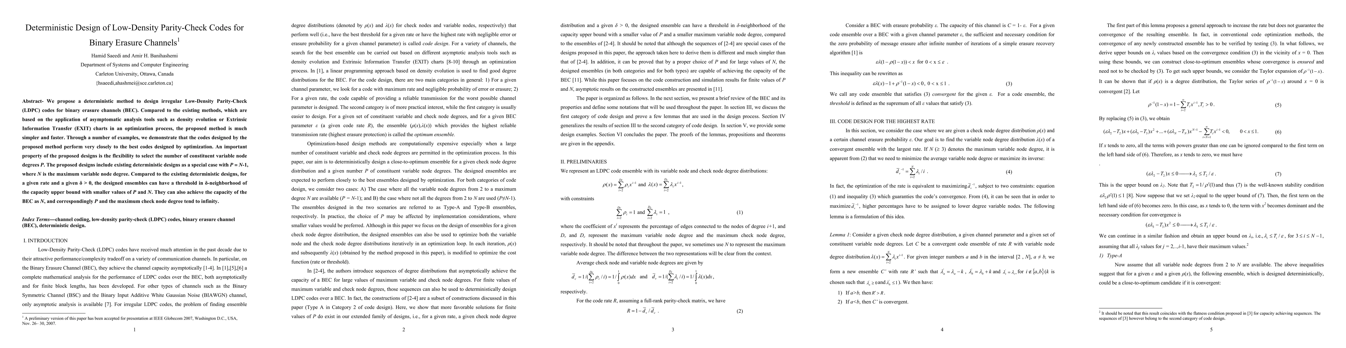 This paper presents a new method for designing low-density parity-check codes for binary erasure channels that outperforms existing methods in terms of speed and flexibility.