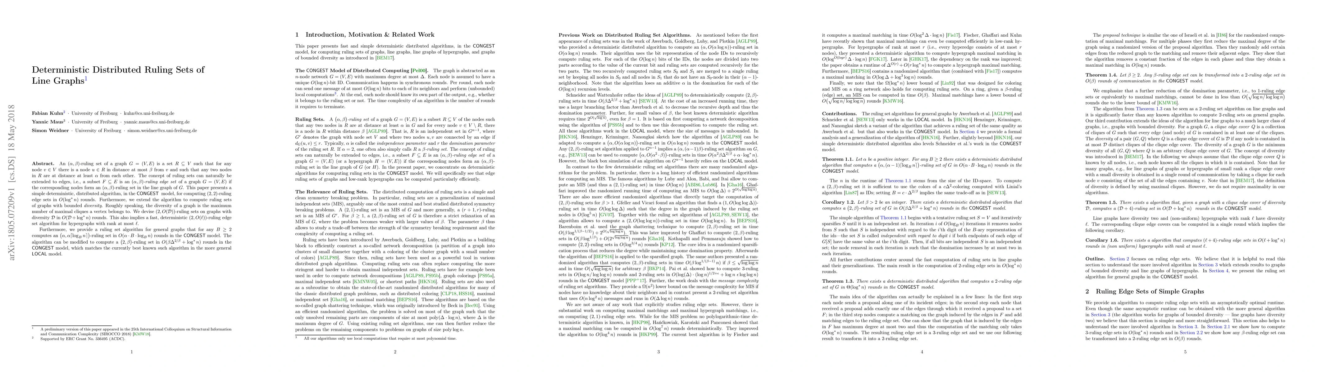 A new distributed algorithm was developed to compute ruling sets in graph theory.