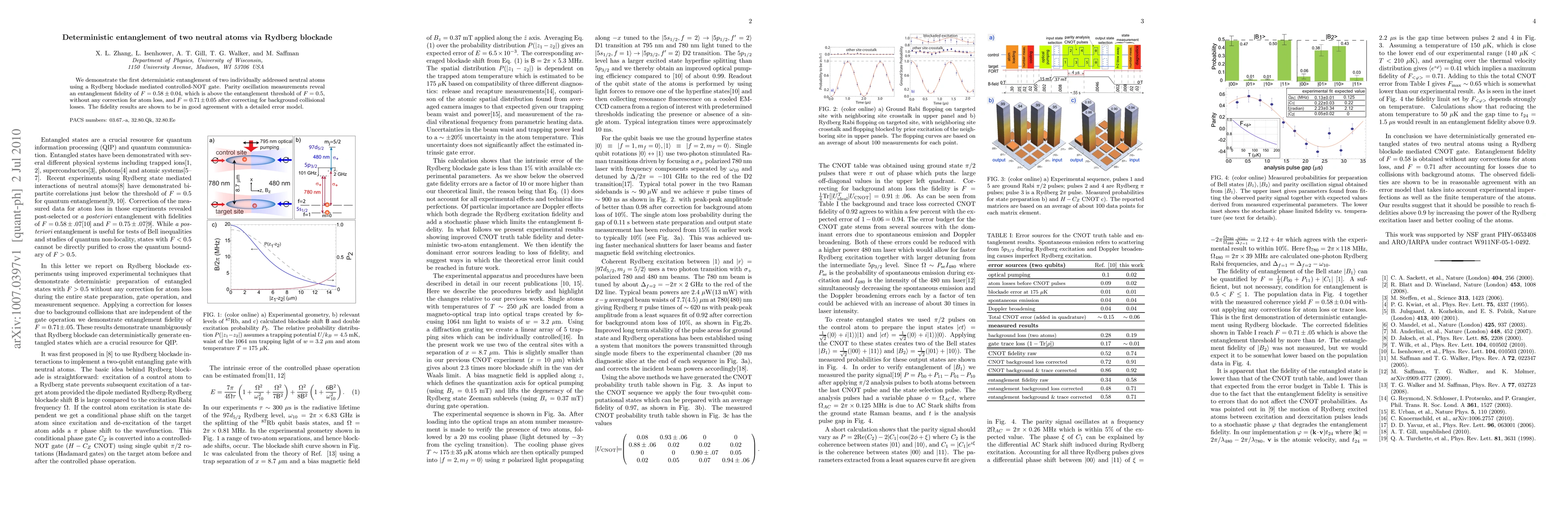 This paper reports the first deterministic entanglement of two neutral atoms using a controlled-NOT gate mediated by Rydberg blockade, achieving an entanglement fidelity of 0.58 before correction and 0.71 after correcting for background collisional losses, demonstrating fidelity above the entanglement threshold.