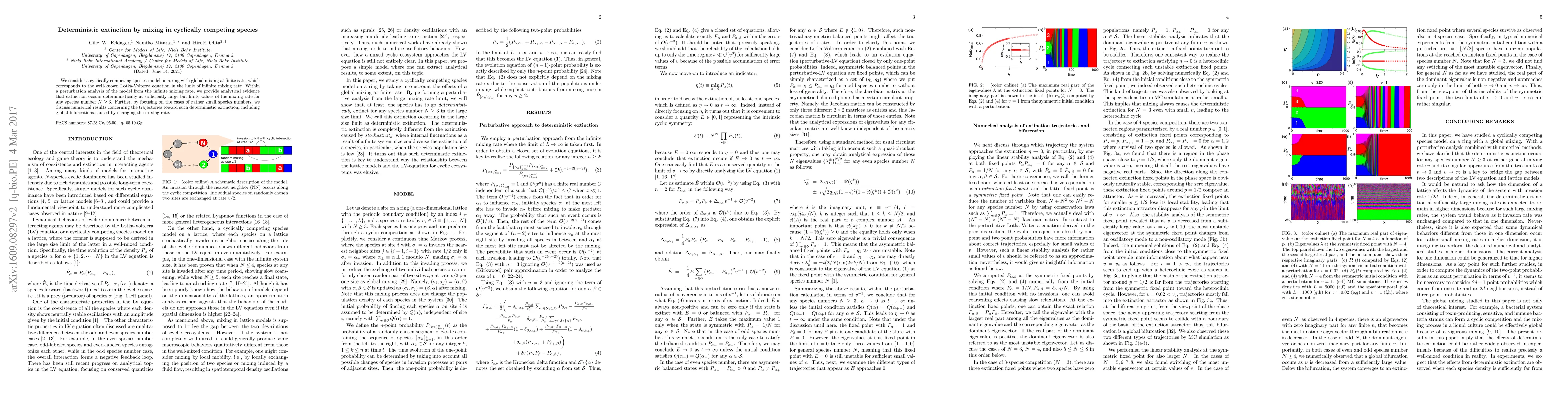 This paper investigates a cyclically competing species model with global mixing, showing that deterministic extinction occurs at sufficiently large mixing rates for any species number $N\ge3$. Analytical and numerical results reveal the trajectories leading to extinction and associated global bifurcations.