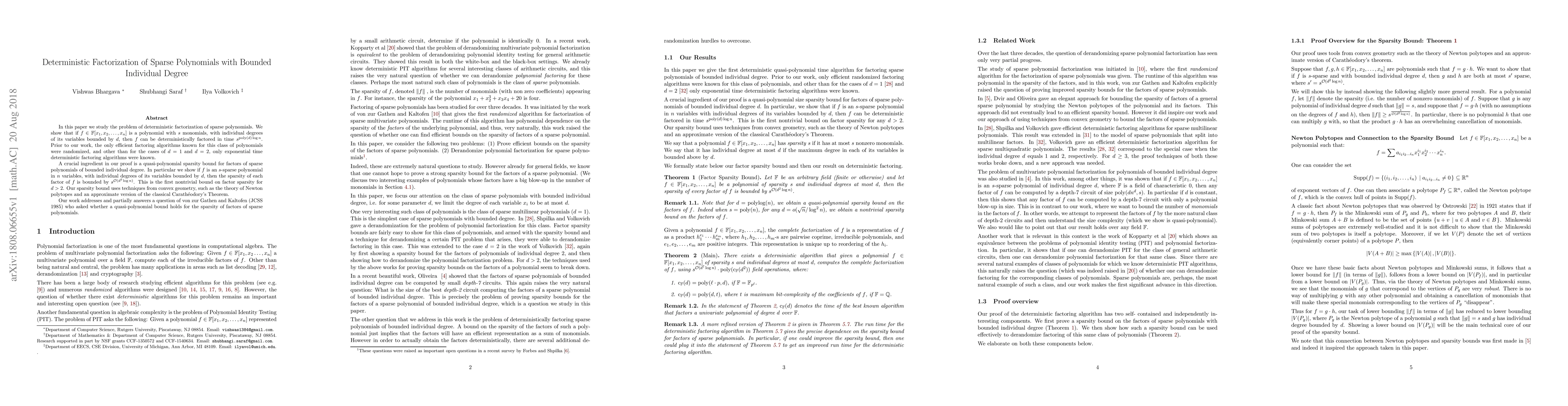 Researchers have developed a deterministic algorithm to factor sparse polynomials with bounded individual degree, achieving time complexity of $s^{ ext{poly}(d)} imes ext{log n}$.