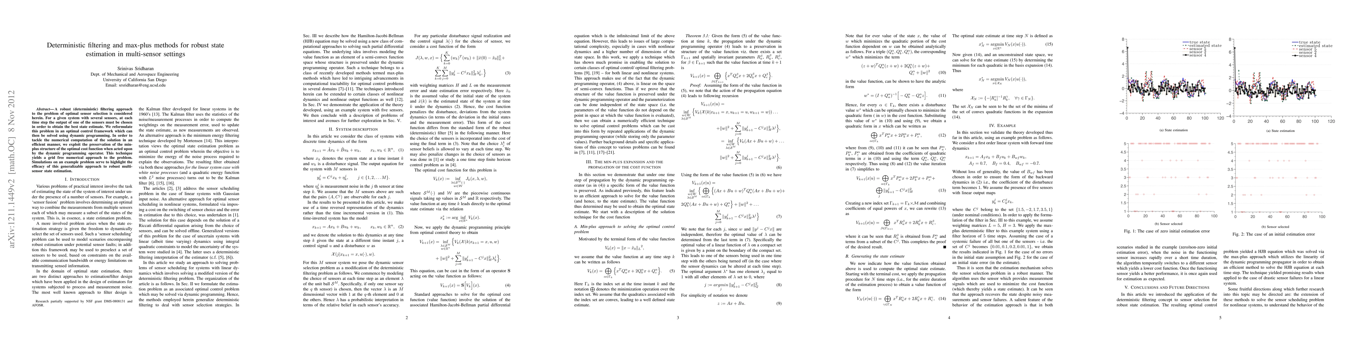 A robust (deterministic) filtering approach to the problem of optimal sensor selection is considered herein. For a given system with several sensors, at each time step the output of one of the sensors must be chosen in order to obtain the best state estimate. We reformulate this problem in an optimal control framework which can then be solved using dynamic programming. In order to tackle the numerical computation of the solution in an efficient manner, we exploit the preservation of the min-plus structure of the optimal cost function when acted upon by the dynamic programming operator. This technique yields a grid free numerical approach to the problem. Simulations on an example problem serve to highlight the efficacy of this generalizable approach to robust multi-sensor state estimation.