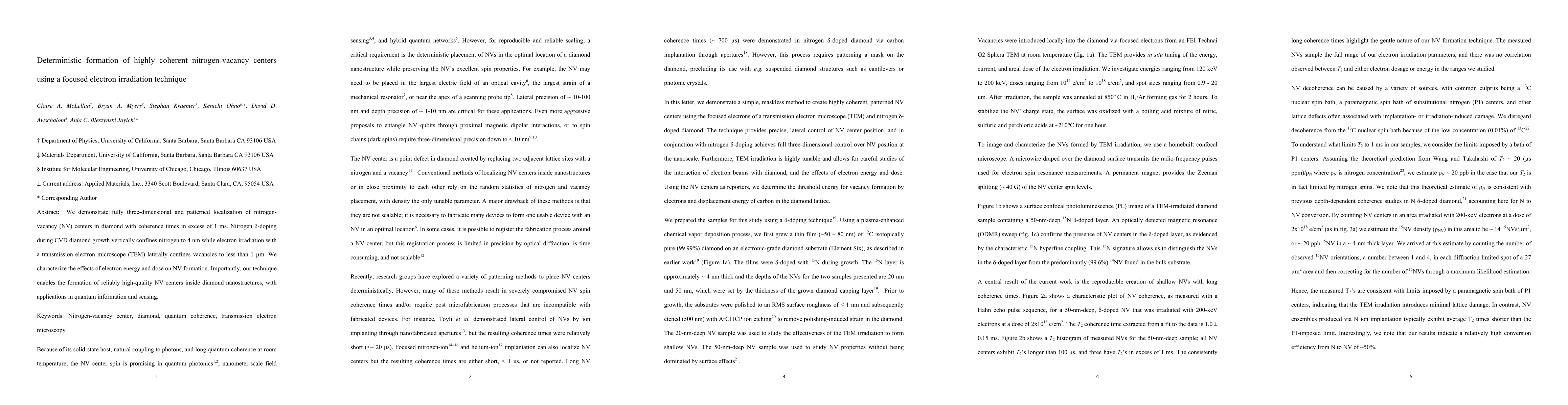 This paper presents a method for creating highly coherent nitrogen-vacancy centers in diamond using nitrogen δ-doping and focused electron irradiation, achieving three-dimensional localization and coherence times over 1 ms. The technique promises high-quality NV centers for quantum information and sensing applications.