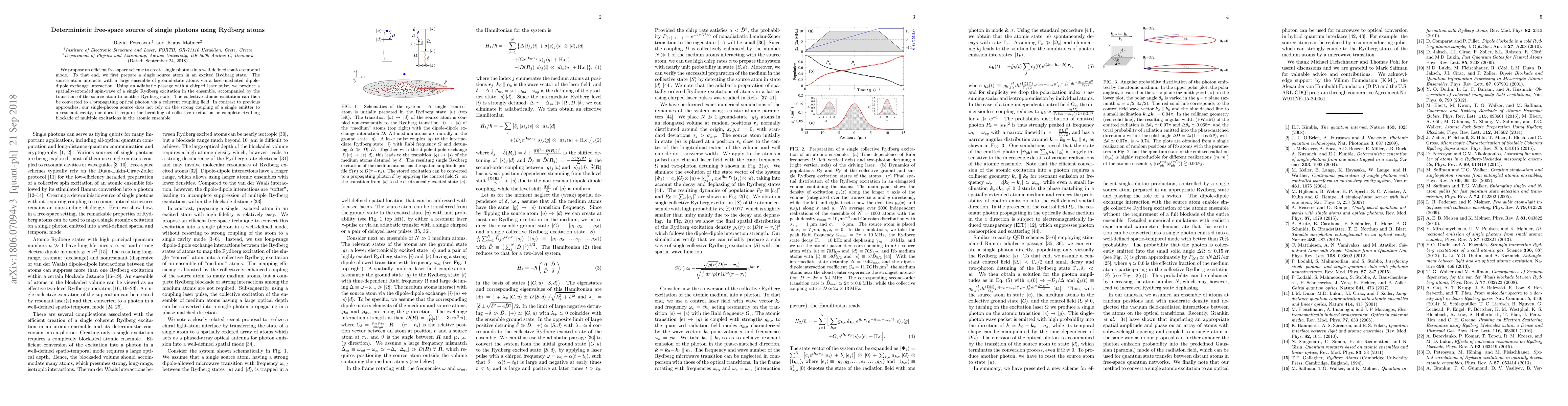 This paper proposes a novel method for generating single photons in free space using Rydberg atoms, where a single excited atom interacts with a ground-state ensemble to create a spin wave, which is then converted into a propagating optical photon without relying on cavity coupling or collective excitation heralding.