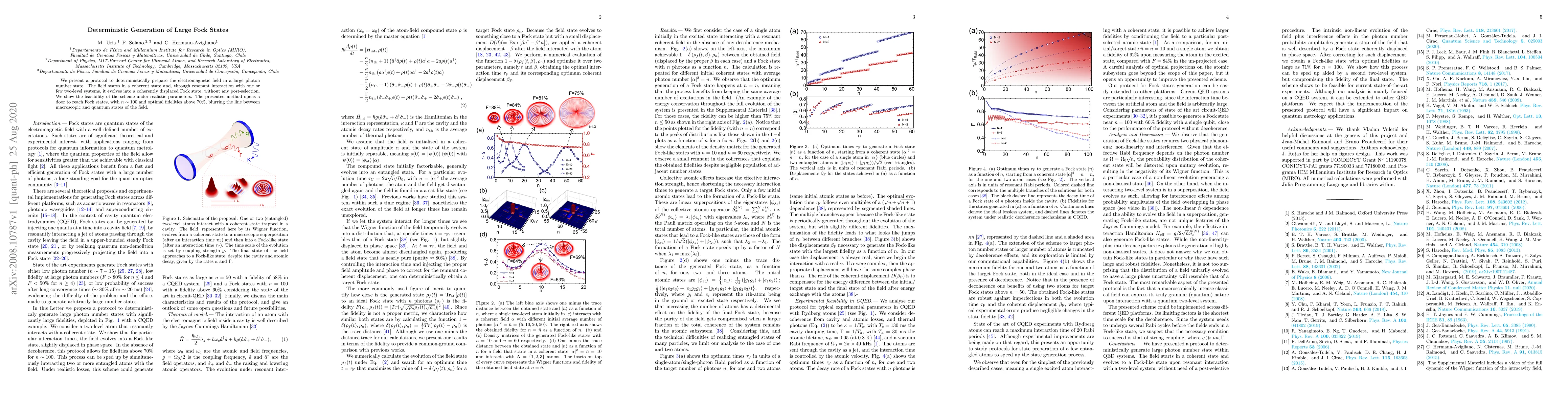 We present a protocol to deterministically prepare the electromagnetic field in a large photon number state. The field starts in a coherent state and, through resonant interaction with one or few two-level systems, it evolves into a coherently displaced Fock state, without any post-selection. We show the feasibility of the scheme under realistic parameters. The presented method opens a door to reach Fock states with $n\sim100$ and optimal fidelities above $70$%, blurring the line between macroscopic and quantum states of the field.