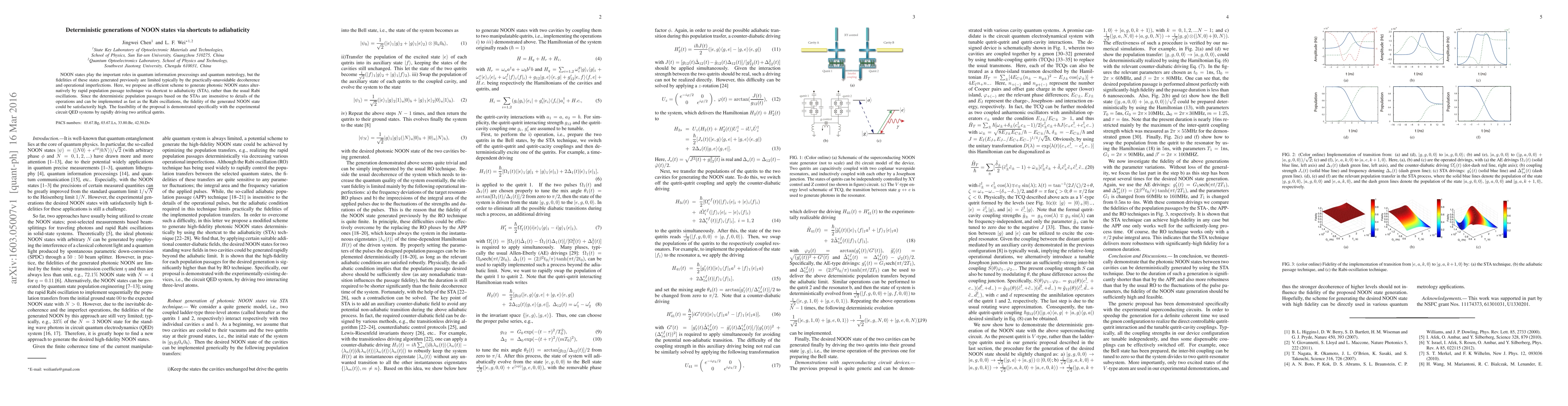 This paper proposes a novel method using shortcuts to adiabaticity to efficiently generate photonic NOON states with high fidelity, overcoming decoherence and operational imperfections. The method, based on rapid population passage, is demonstrated experimentally in a circuit QED system with artificial qutrits.