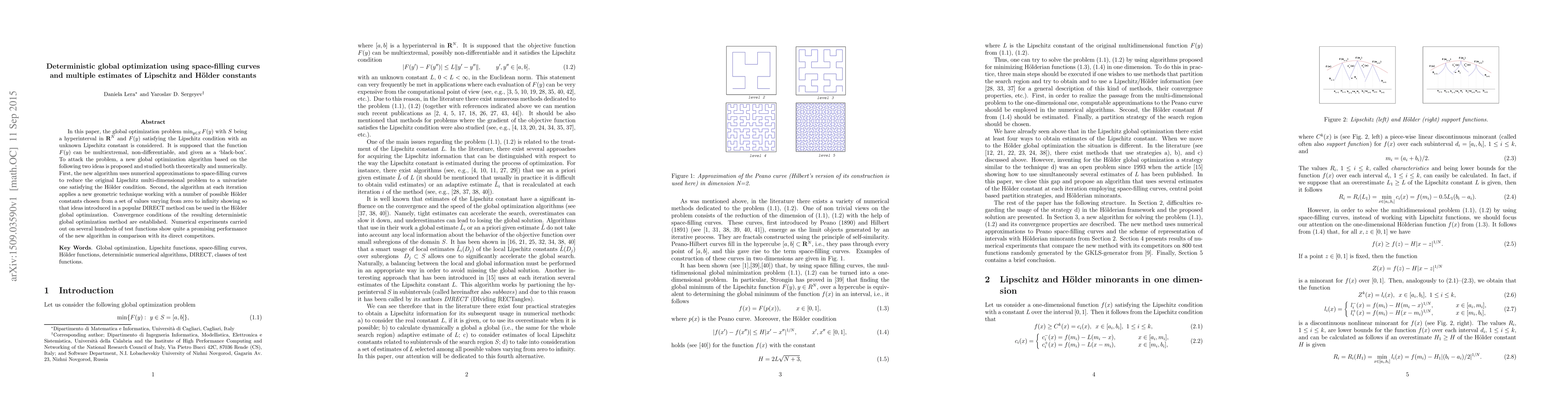 This paper proposes a new deterministic global optimization algorithm that leverages space-filling curves to transform a multi-dimensional Lipschitz problem into a univariate Hölder problem, and employs multiple estimates of Hölder constants to enhance performance. The method shows promising results in numerical experiments compared to other global optimization techniques.