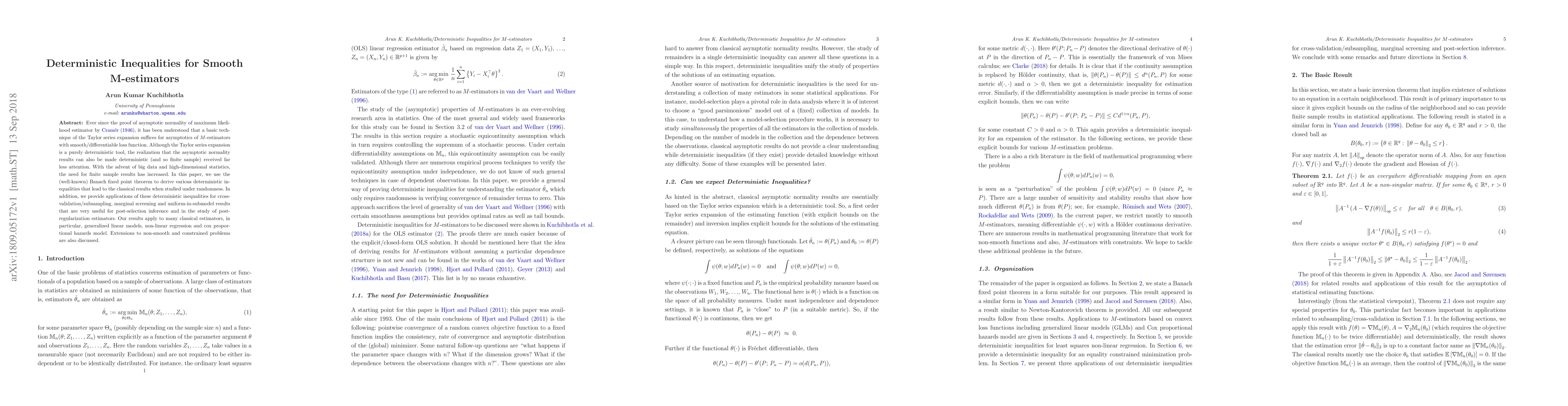 This paper develops deterministic inequalities for smooth M-estimators using the Banach fixed point theorem, providing finite sample results applicable to big data scenarios. It also explores applications in crossvalidation, marginal screening, and uniform-in-submodel results for post-selection inference and post-regularization estimators.