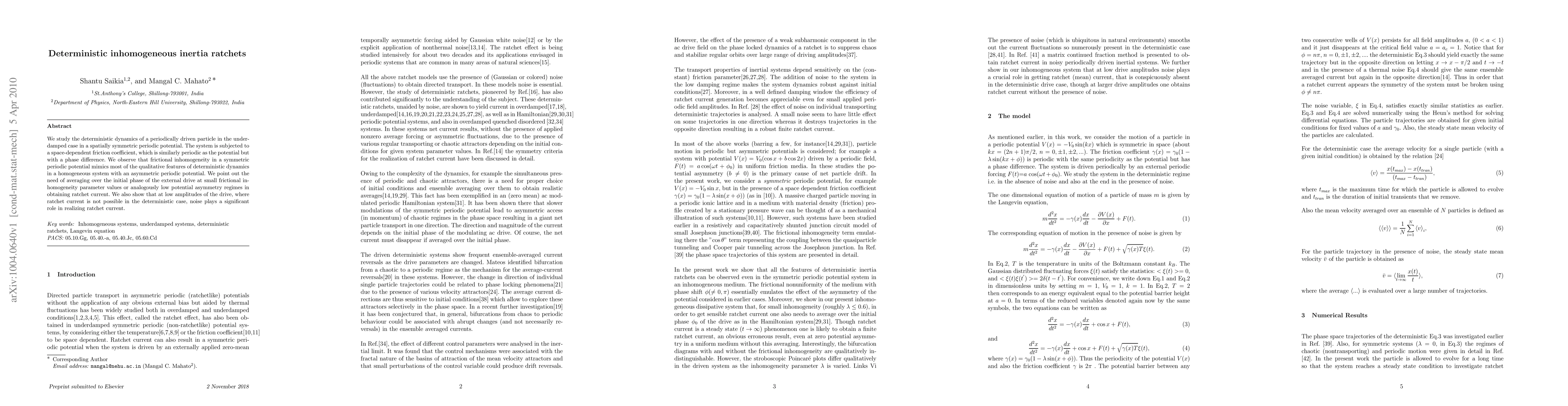 This paper investigates the deterministic dynamics of a periodically driven underdamped particle in a symmetric periodic potential with a space-dependent friction coefficient. It reveals that frictional inhomogeneity can mimic asymmetric potential dynamics, necessitating averaging over the drive's initial phase for observable ratchet current, and highlights noise's role in enabling current at low drive amplitudes.