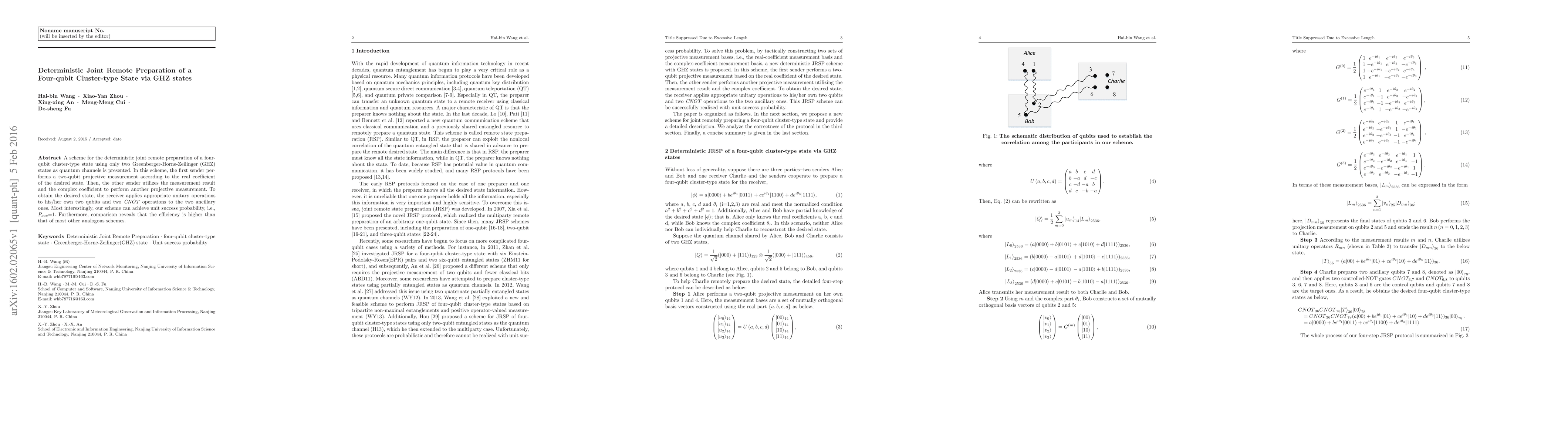 A scheme for remote preparation of a four-qubit cluster state using GHZ states achieves 100% success probability and outperforms similar schemes in efficiency.