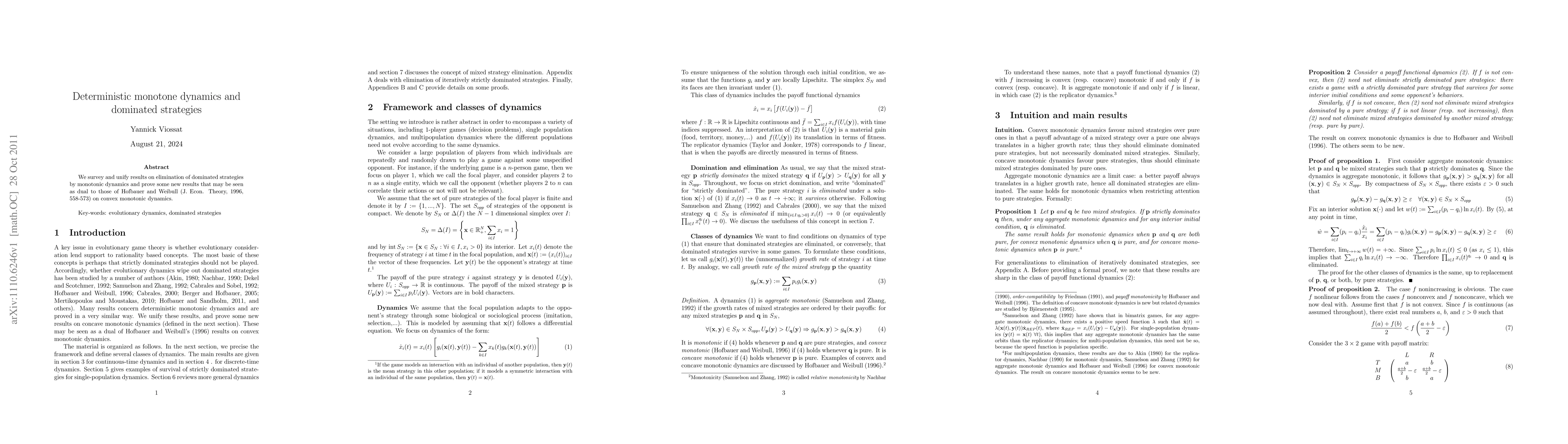We survey and unify results on elimination of dominated strategies by monotonic dynamics and prove some new results that may be seen as dual to those of Hofbauer and Weibull (J. Econ. Theory, 1996, 558-573) on convex monotonic dynamics.