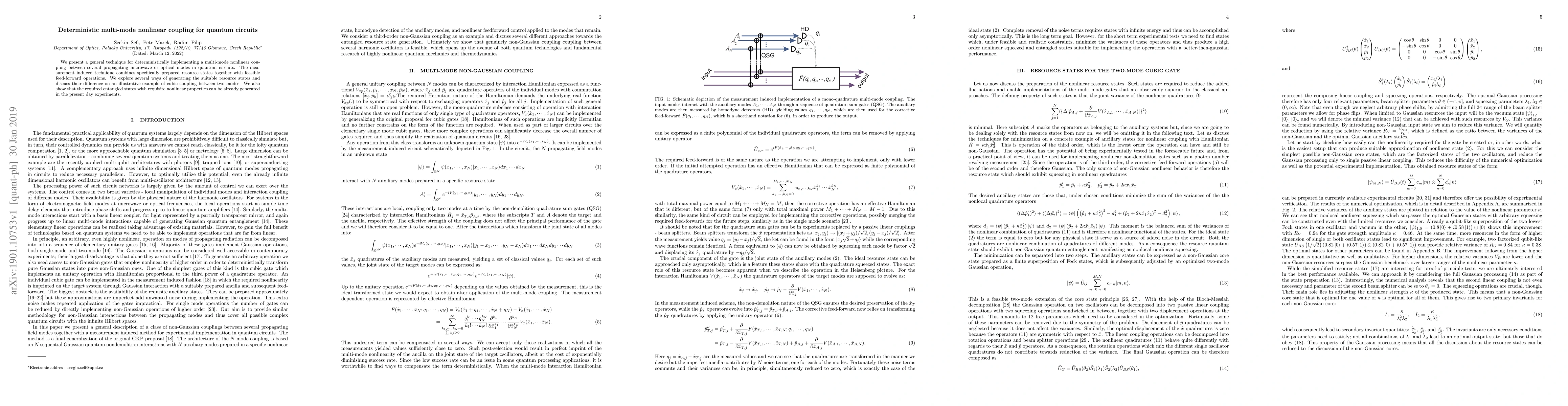 This paper introduces a method for deterministically implementing multi-mode nonlinear coupling in quantum circuits using measurement-induced techniques and resource states, demonstrating its feasibility with current experimental capabilities. The approach combines specific resource states and feed-forward operations to achieve cubic coupling between modes.