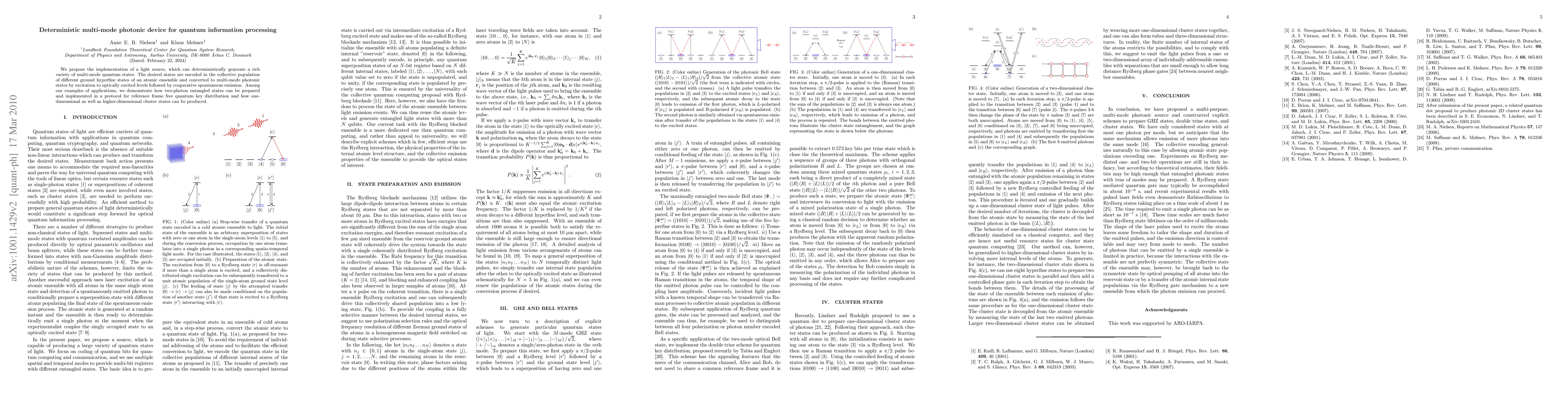Researchers propose a device that can create various multi-mode quantum states deterministically, with applications in quantum key distribution and cluster state production.