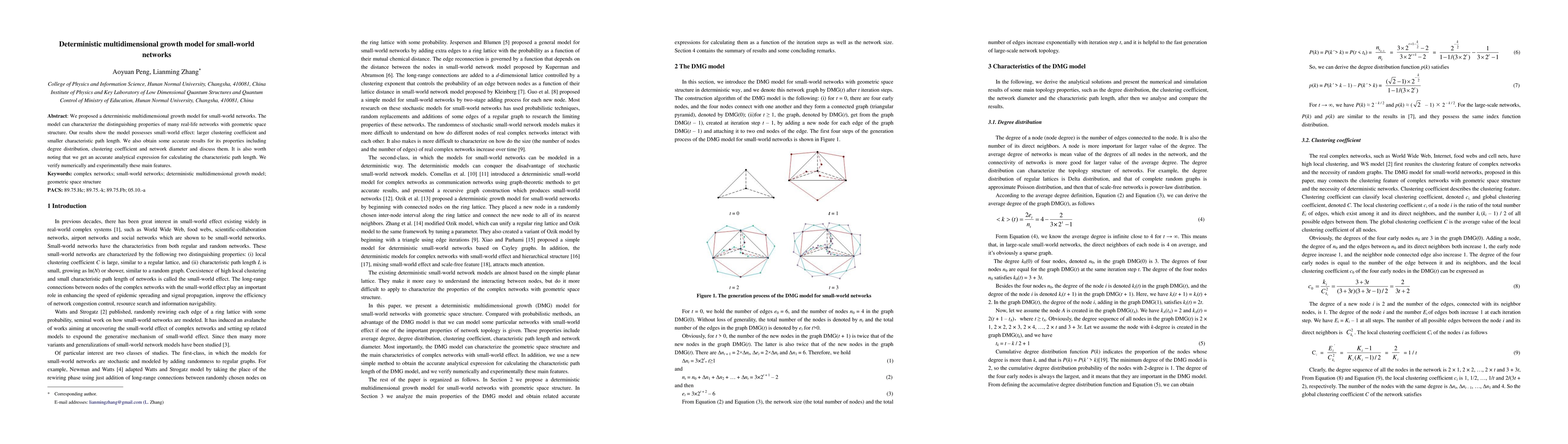 This paper proposes a deterministic multidimensional growth model for small-world networks, demonstrating its ability to characterize real-life networks with geometric structures. The model exhibits small-world properties, including a high clustering coefficient and short path length, and provides accurate analytical expressions for these features, verified through numerical and experimental validation.