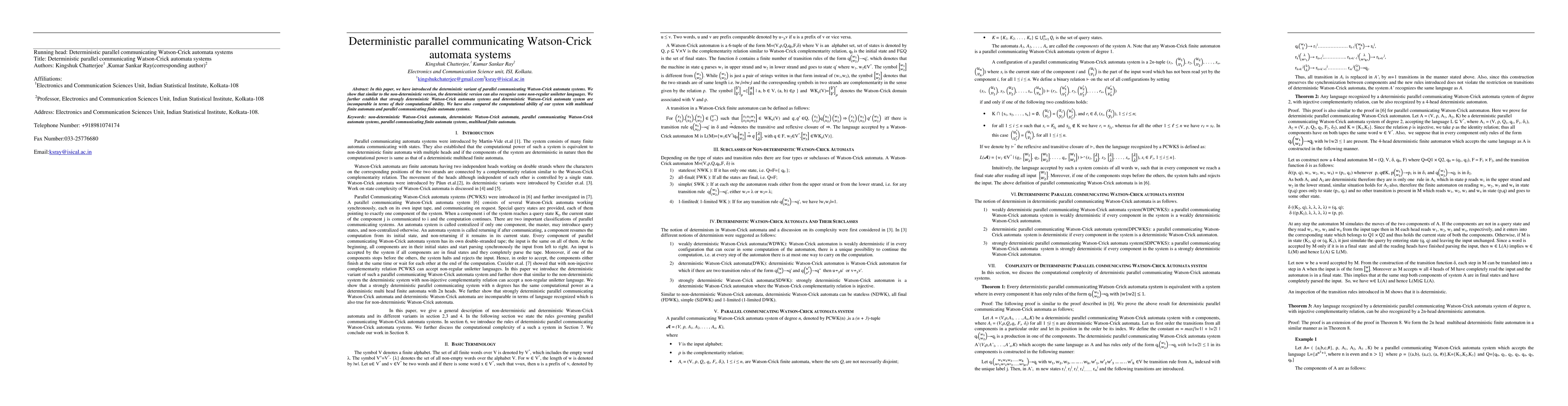 This paper introduces a deterministic variant of parallel communicating Watson-Crick automata systems, demonstrating their ability to recognize non-regular uniletter languages. It also establishes the incomparability of strongly deterministic and general deterministic Watson-Crick automata systems in computational power.