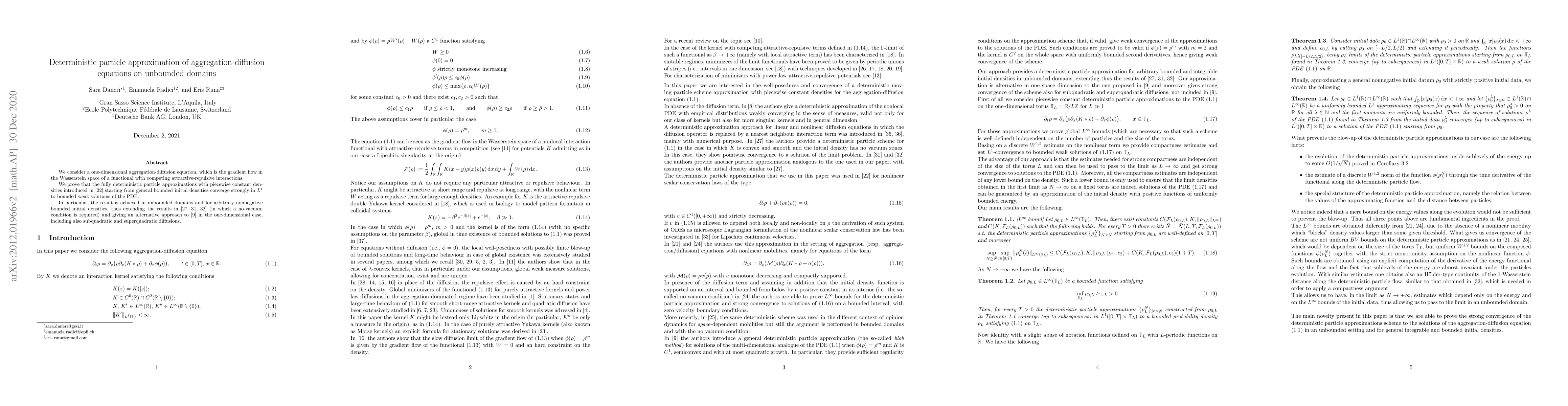 We consider a one-dimensional aggregation-diffusion equation, which is the gradient flow in the Wasserstein space of a functional with competing attractive-repulsive interactions. We prove that the fully deterministic particle approximations with piecewise constant densities introduced in~\cite{Di Francesco-Rosini} starting from general bounded initial densities converge strongly in $L^1$ to bounded weak solutions of the PDE. In particular, the result is achieved in unbounded domains and for arbitrary nonnegative bounded initial densities, thus extending the results in \cite{Gosse-Toscani, Matthes-Osberger, Mathes-Soellner} (in which a no-vacuum condition is required) and giving an alternative approach to \cite{Carrillo-Craig-Patacchini} in the one-dimensional case, including also subquadratic and superquadratic diffusions.
