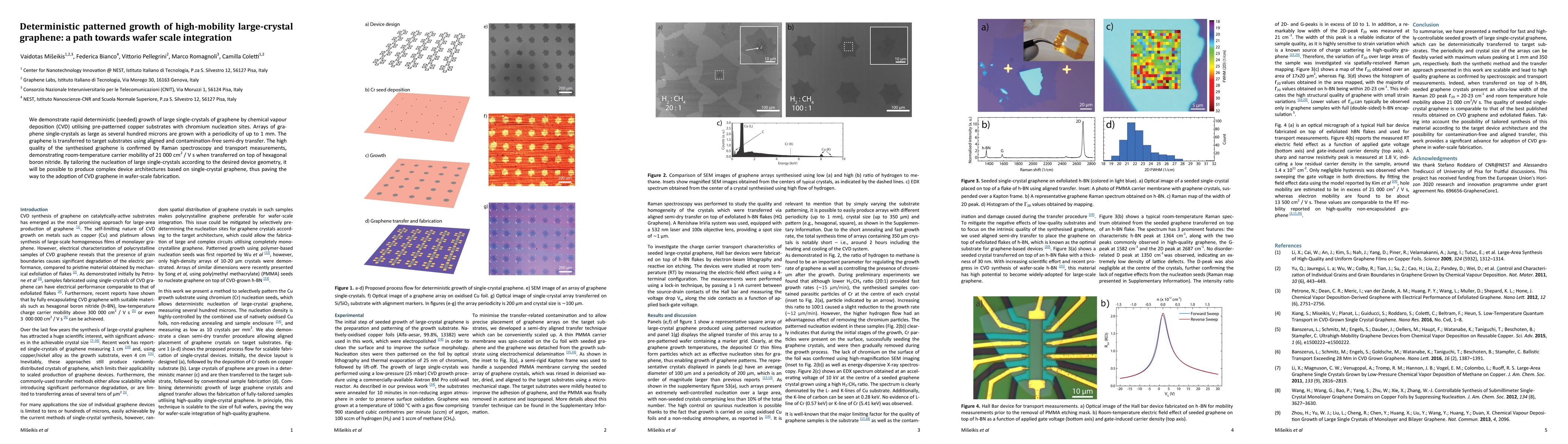 This paper presents a method for the deterministic growth of large, high-mobility graphene single-crystals via chemical vapour deposition on pre-patterned copper substrates, paving the way for complex device architectures and wafer-scale integration. The method ensures high-quality graphene with significant room-temperature carrier mobility.