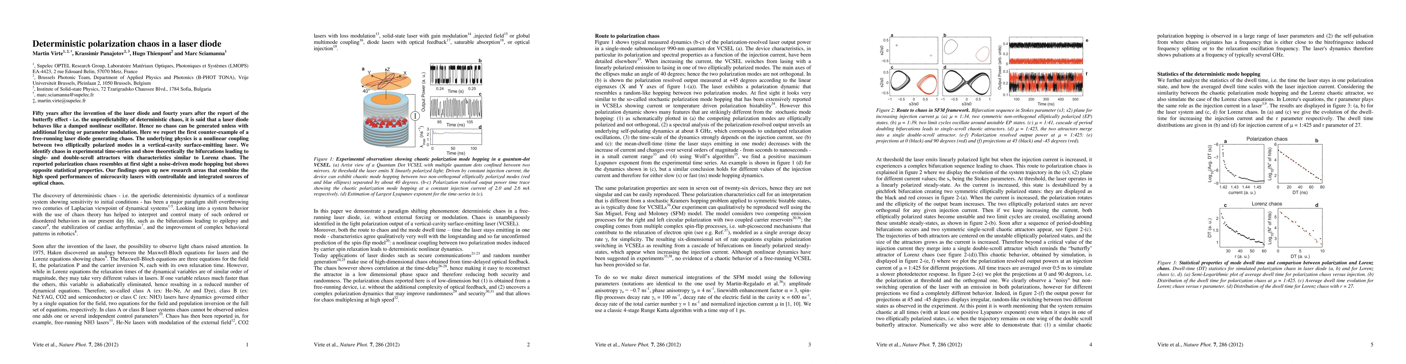Fifty years after the invention of the laser diode and fourty years after the report of the butterfly effect - i.e. the unpredictability of deterministic chaos, it is said that a laser diode behaves like a damped nonlinear oscillator. Hence no chaos can be generated unless with additional forcing or parameter modulation. Here we report the first counter-example of a free-running laser diode generating chaos. The underlying physics is a nonlinear coupling between two elliptically polarized modes in a vertical-cavity surface-emitting laser. We identify chaos in experimental time-series and show theoretically the bifurcations leading to single- and double-scroll attractors with characteristics similar to Lorenz chaos. The reported polarization chaos resembles at first sight a noise-driven mode hopping but shows opposite statistical properties. Our findings open up new research areas that combine the high speed performances of microcavity lasers with controllable and integrated sources of optical chaos.
