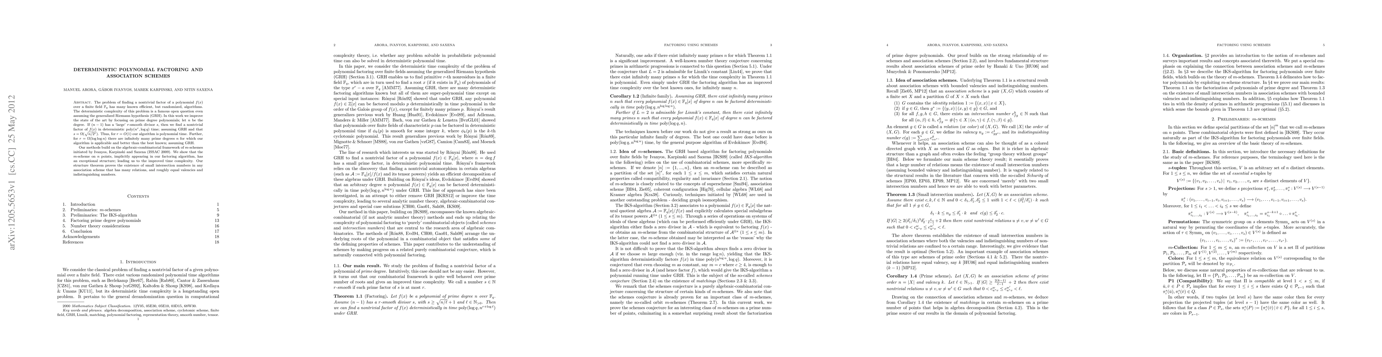 This paper presents a deterministic polynomial factoring algorithm for prime degree polynomials over finite fields, improving upon existing randomized methods. The algorithm leverages the exceptional structure of m-schemes in association schemes to achieve polynomial time complexity under certain conditions, assuming the generalized Riemann hypothesis.
