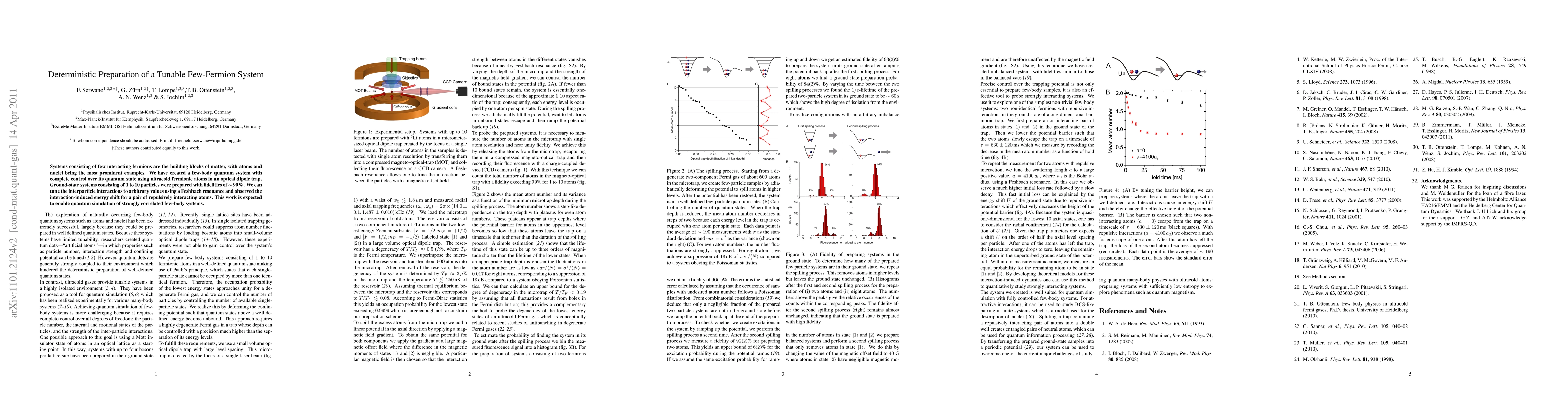 Systems consisting of few interacting fermions are the building blocks of matter with atoms and nuclei being the most prominent examples. We have created an artificial few-body quantum system with complete control over the system's quantum state using ultracold fermionic atoms in an optical dipole trap. We deterministically prepare ground state systems consisting of one to ten particles with fidelities of ~ 90%. We can tune the inter-particle interactions to arbitrary values using a Feshbach resonance and have observed the interaction-induced energy shift for a pair of repulsively interacting atoms. With this work, quantum simulation of strongly correlated fewbody systems has become possible. In addition, these microscopic quantum systems can be used as building blocks for scalable quantum information processing.