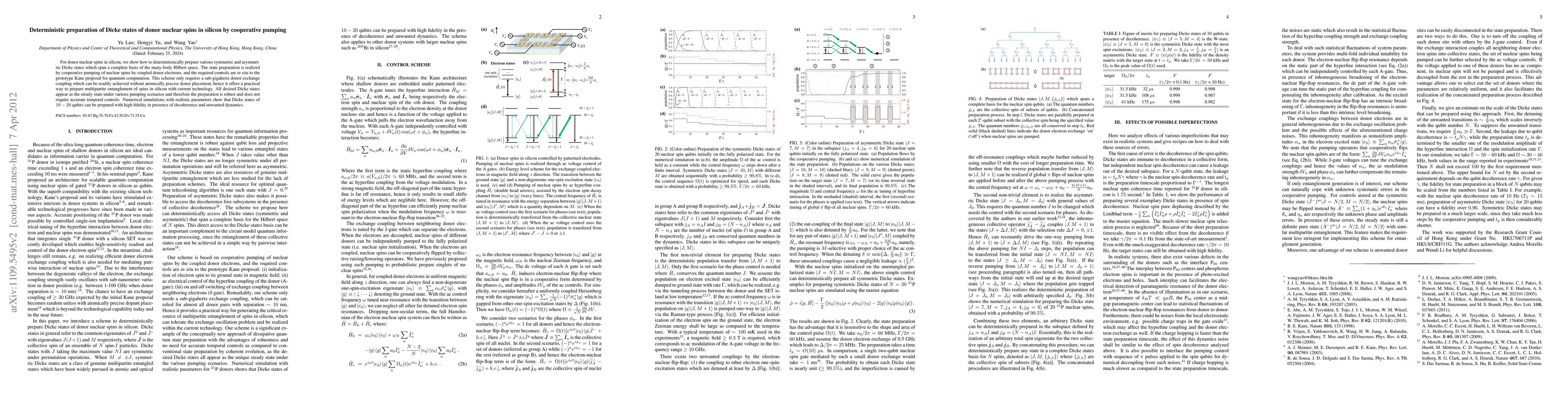 This paper presents a method for deterministically preparing Dicke states of donor nuclear spins in silicon using cooperative pumping by coupled donor electrons. The approach is practical and robust, requiring only sub-gigahertz coupling and offering a feasible route to multipartite spin entanglement with current technology, as demonstrated by simulations of 10-20 qubits.