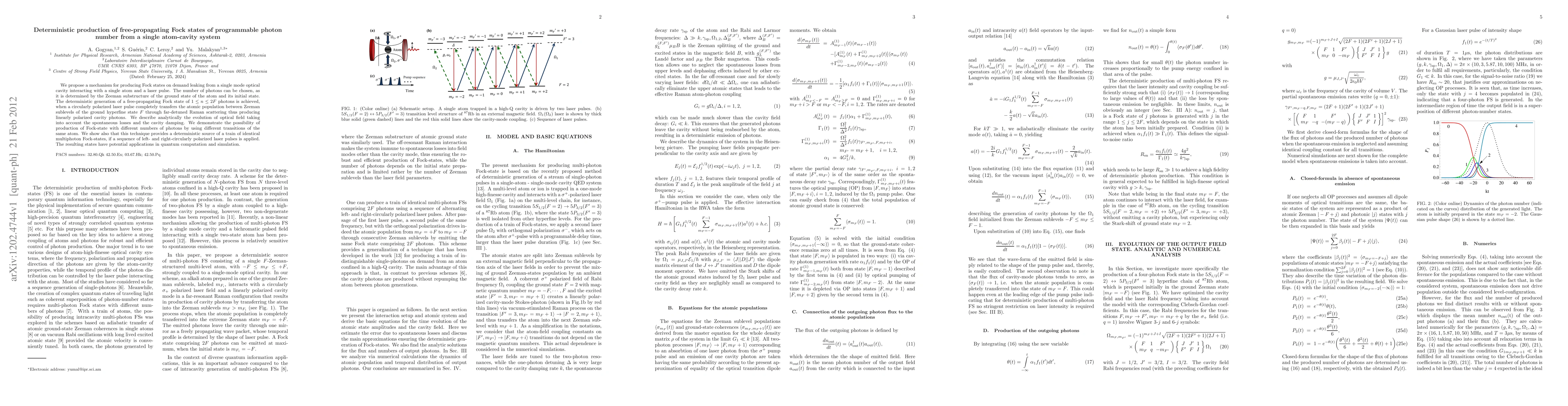 This paper proposes a method to deterministically produce Fock states of programmable photon numbers from a single atom-cavity system using Zeeman sublevel transitions and far-detuned Raman scattering. The technique enables the generation of a train of identical multiphoton states, with potential applications in quantum computation and simulation.