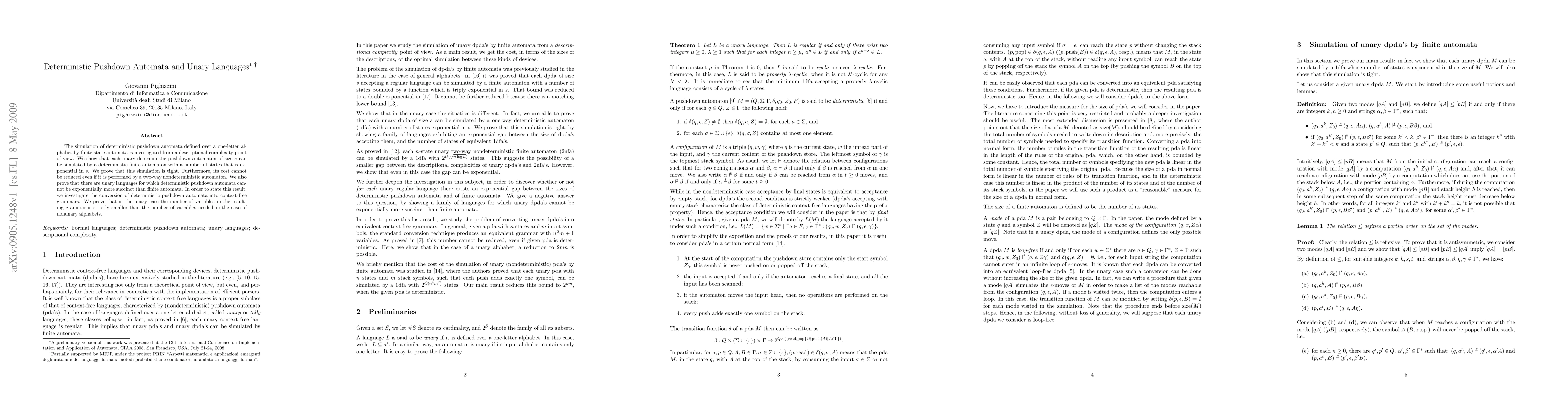 The paper establishes a tight simulation bound between unary DPDA and FSAs, demonstrating that unary DPDA cannot be exponentially more succinct than FSAs and providing a method to construct context-free grammars with fewer variables for unary languages.