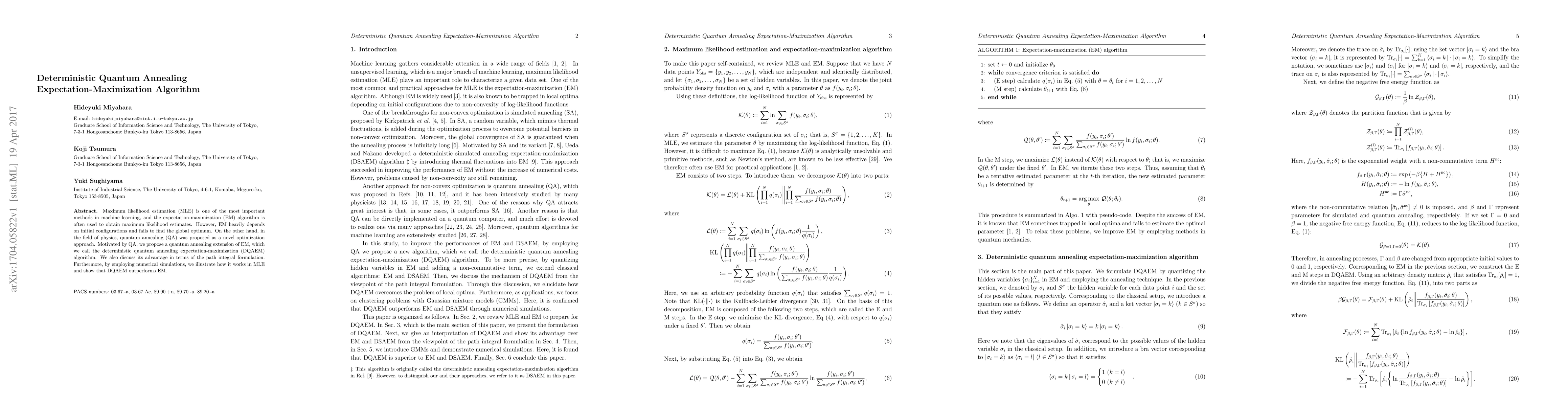 The paper proposes a deterministic quantum annealing extension of the expectation-maximization (EM) algorithm, termed DQAEM, to address the limitations of EM in finding the global optimum. Numerical simulations demonstrate that DQAEM outperforms traditional EM in maximum likelihood estimation.
