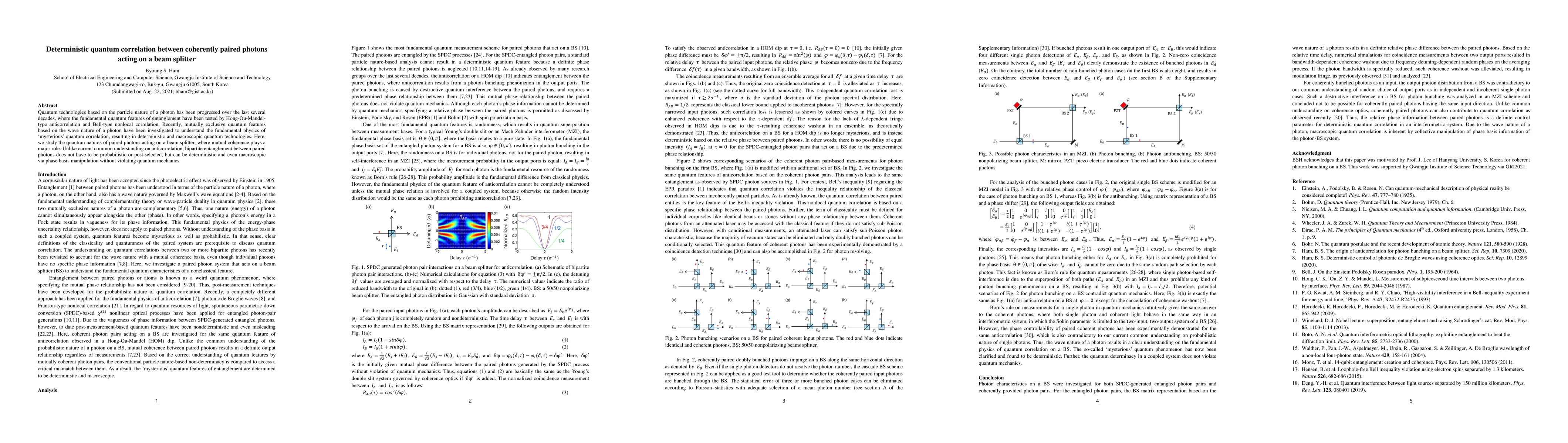 This paper investigates the deterministic quantum correlation between coherently paired photons when they interact with a beam splitter, demonstrating that bipartite entanglement can be achieved in a deterministic manner through phase basis manipulation, challenging the conventional probabilistic understanding of quantum entanglement.