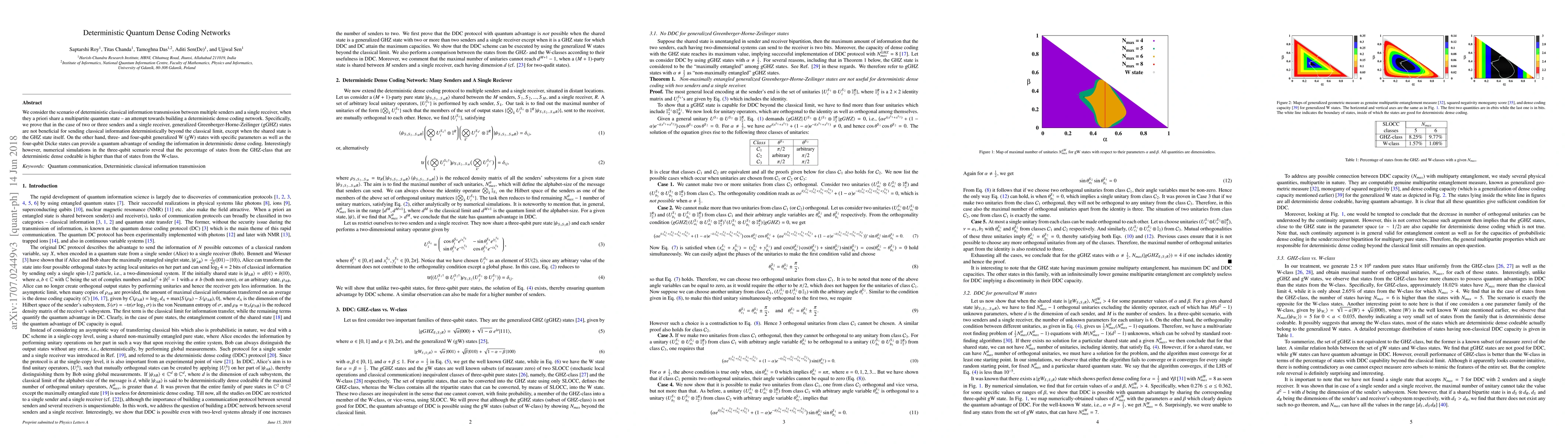This paper investigates deterministic classical information transmission using shared multipartite quantum states, specifically focusing on dense coding networks with two or three senders and one receiver. It finds that generalized GHZ states do not offer advantages beyond classical limits, except for the pure GHZ state, while generalized W states and Dicke states can achieve quantum advantages in dense coding. Numerical simulations show that more GHZ-class states are deterministically codeable than W-class states.