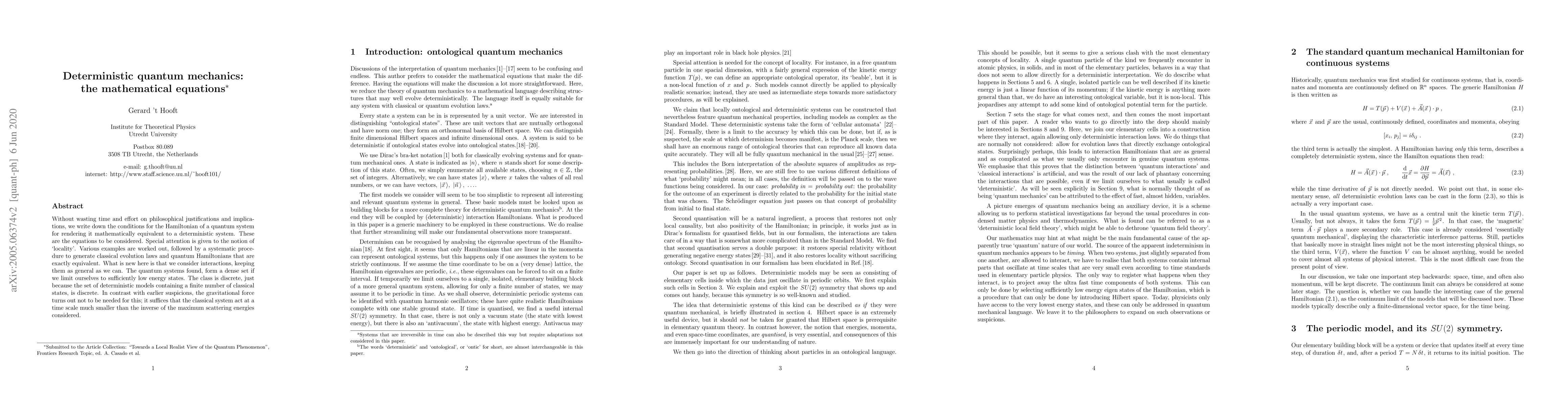 Without wasting time and effort on philosophical justifications and implications, we write down the conditions for the Hamiltonian of a quantum system for rendering it mathematically equivalent to a deterministic system. These are the equations to be considered. Special attention is given to the notion of 'locality'. Various examples are worked out, followed by a systematic procedure to generate classical evolution laws and quantum Hamiltonians that are exactly equivalent. What is new here is that we consider interactions, keeping them as general as we can. The quantum systems found, form a dense set if we limit ourselves to sufficiently low energy states. The class is discrete, just because the set of deterministic models containing a finite number of classical states, is discrete. In contrast with earlier suspicions, the gravitational force turns out not to be needed for this; it suffices that the classical system act at a time scale much smaller than the inverse of the maximum scattering energies considered.