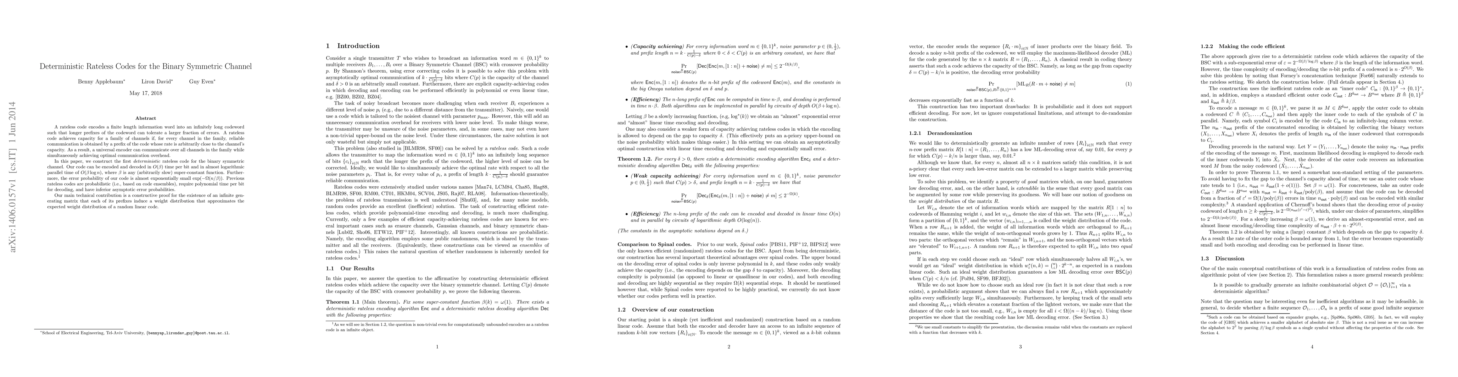 Researchers developed a deterministic rateless code for the binary symmetric channel, achieving optimal communication overhead while minimizing error probability. The code can be encoded and decoded in almost logarithmic parallel time.