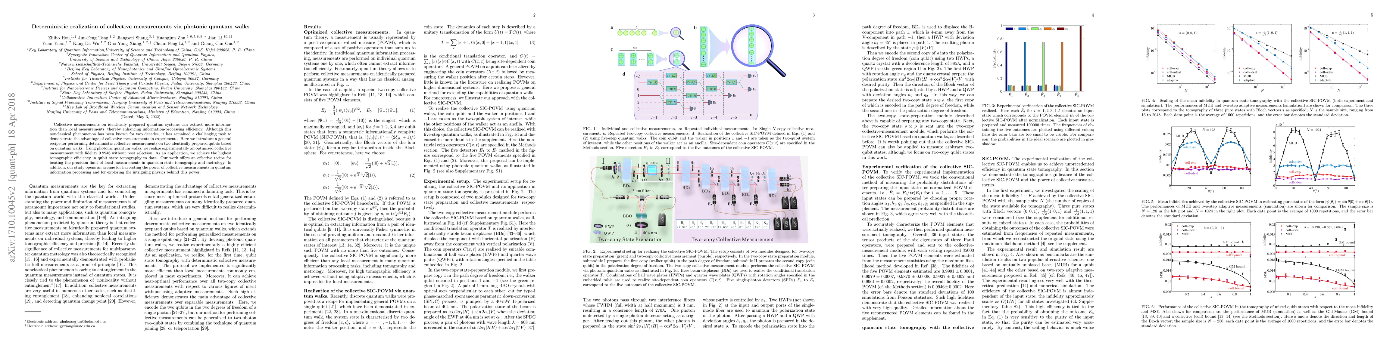 This paper presents a method for deterministic collective measurements on two qubits using photonic quantum walks, achieving a high fidelity of 0.9946. The study demonstrates the potential of collective measurements to surpass the precision limits of local measurements in quantum state tomography and metrology.