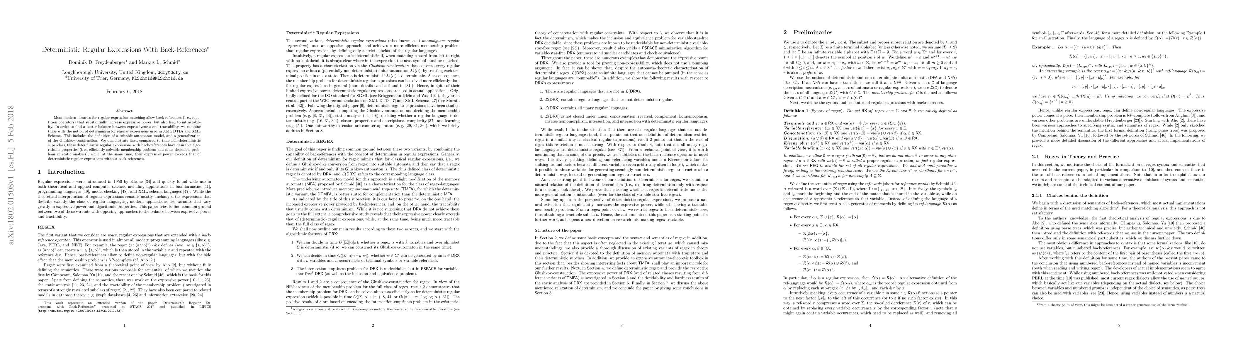 This paper introduces deterministic regular expressions with back-references, combining expressive power with tractability. It presents a suitable automaton model and a generalized Glushkov construction, showing that these expressions maintain efficient membership problem solving and decidable static analysis while surpassing the expressiveness of traditional deterministic regular expressions.