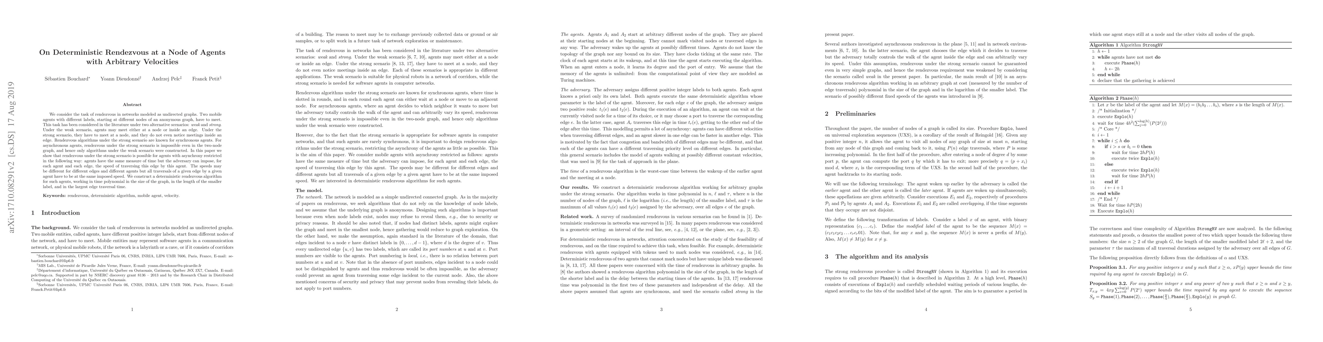 This paper presents a deterministic rendezvous algorithm for two asynchronous agents with arbitrary velocities in an undirected graph, ensuring they meet at a node under the strong scenario, where meetings inside edges are not noticed. The algorithm operates within polynomial time relative to the graph size, label length, and maximum traversal time.