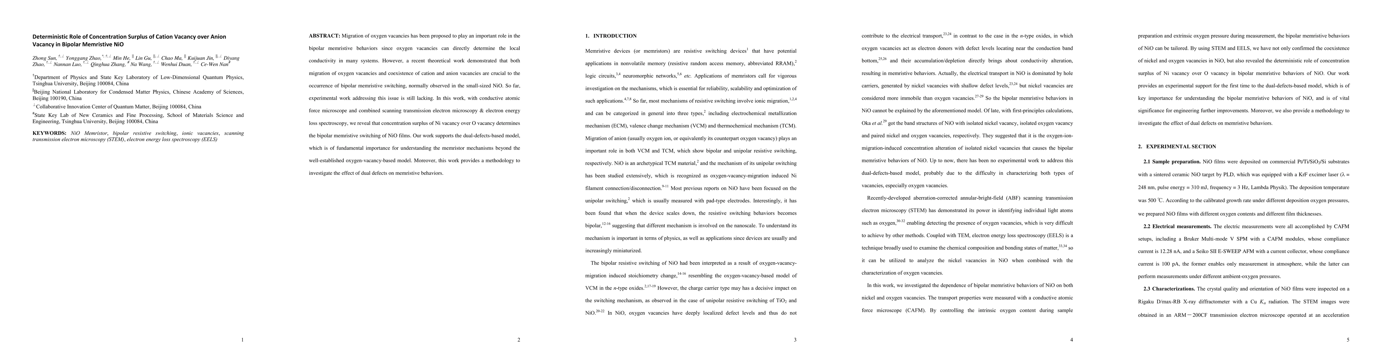 This study reveals that the concentration surplus of cation vacancies over anion vacancies in NiO films is crucial for bipolar memristive switching, supporting a dual-defects-based model beyond the traditional oxygen-vacancy-based model. The findings provide a methodology to explore the impact of dual defects on memristive behaviors.
