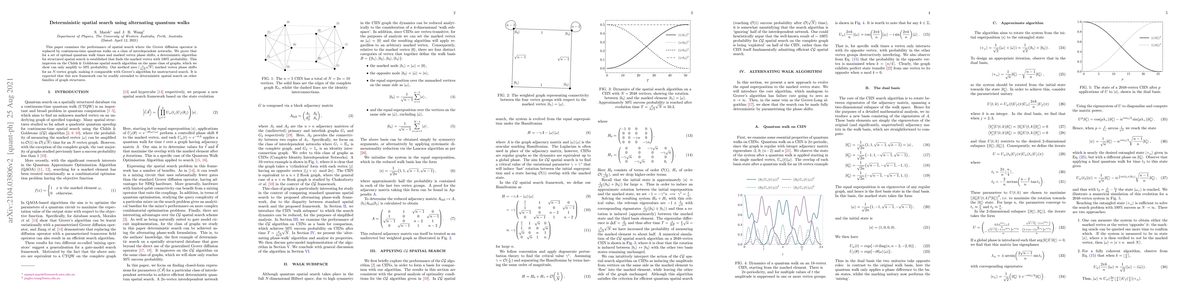 This paper presents a deterministic spatial search algorithm using continuous-time quantum walks on interdependent networks, achieving 100% success probability. It improves upon the original algorithm by using optimal quantum walk times and marked vertex phase shifts, offering a framework that can be extended to other graph structures.