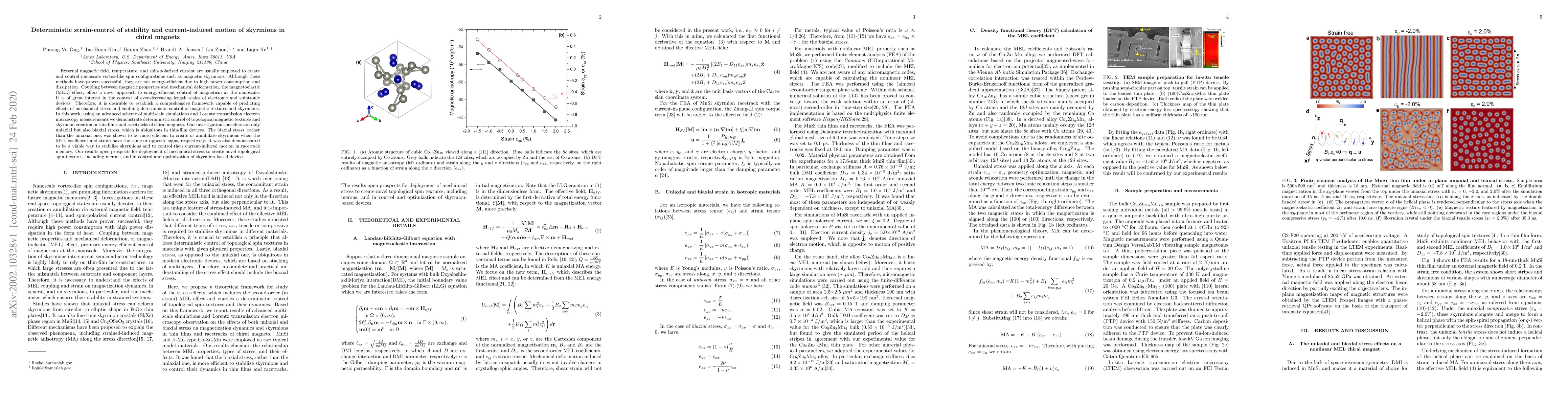 External magnetic field, temperature, and spin-polarized current are usually employed to create and control nanoscale vortex-like spin configurations such as magnetic skyrmions. Although these methods have proven successful, they are not energy-efficient due to high power consumption and dissipation. Coupling between magnetic properties and mechanical deformation, the magnetoelastic (MEL) effect, offers a novel approach to energy-efficient control of magnetism at the nanoscale. It is of great interest in the context of ever-decreasing length scales of electronic and spintronic devices. Therefore, it is desirable to establish a comprehensive framework capable of predicting the effects of mechanical stress and enabling deterministic control of magnetic textures and skyrmions. In this work, using an advanced scheme of multiscale simulations and Lorentz transmission electron microscopy measurements we demonstrate deterministic control of topological magnetic textures and skyrmion creation in thin films and racetracks of chiral magnets. Our investigation considers not only uniaxial but also biaxial stress, which is ubiquitous in thin-film devices. The biaxial stress, rather than the uniaxial one, was shown to be more efficient to create or annihilate skyrmions when the MEL coefficient and strain have the same or opposite signs, respectively. It was also demonstrated to be a viable way to stabilize skyrmions and to control their current-induced motion in racetrack memory. Our results open prospects for deployment of mechanical stress to create novel topological spin textures, including merons, and in control and optimization of skyrmion-based devices.