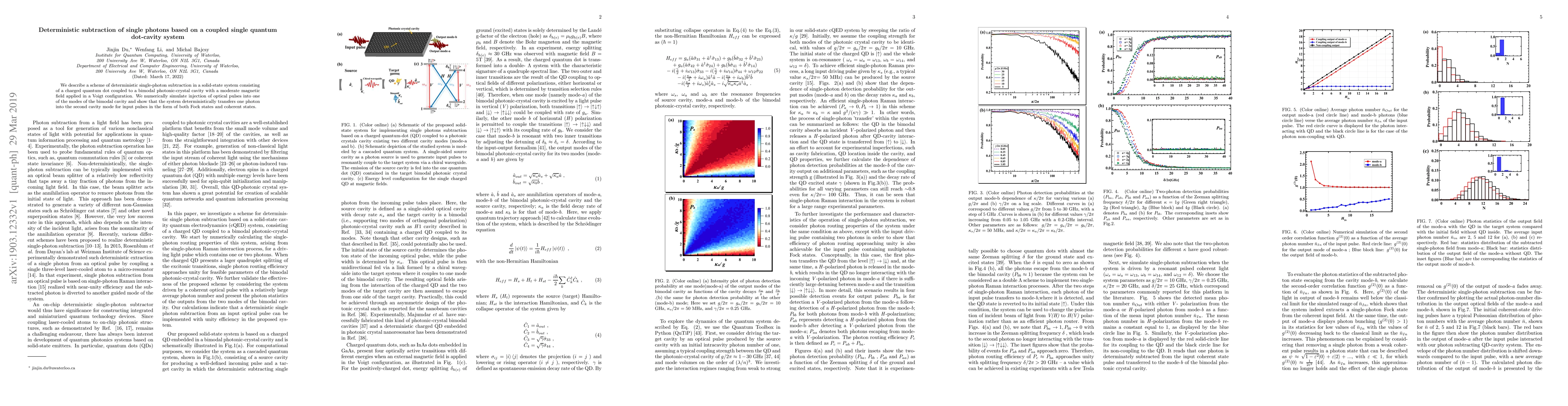 This research proposes a deterministic single-photon subtraction scheme using a coupled quantum dot-cavity system under a magnetic field. The system transfers one photon from one cavity mode to another for both Fock and coherent input states, as demonstrated through numerical simulations.