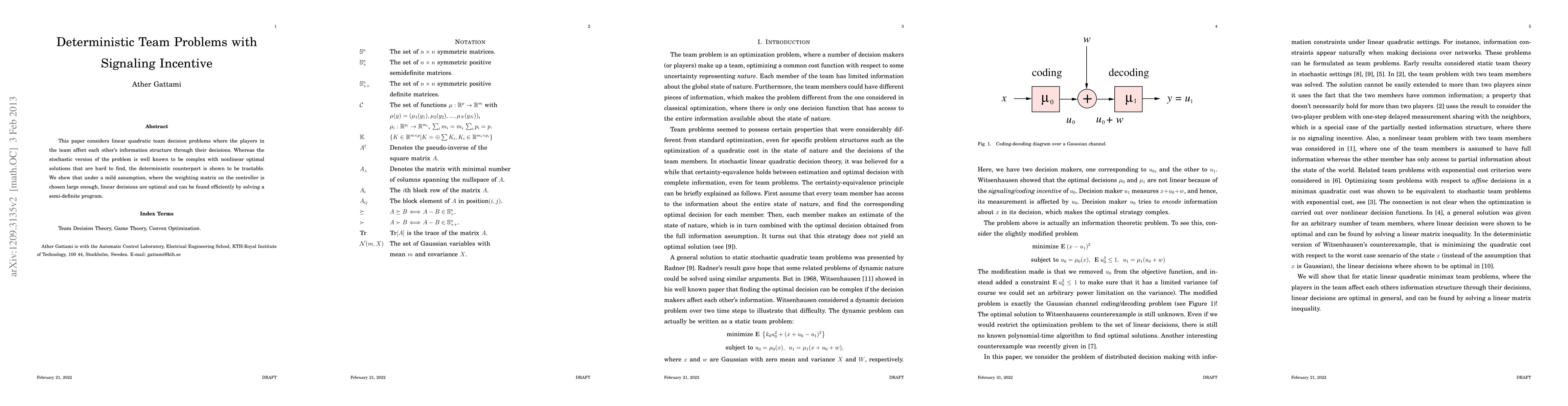 This paper considers linear quadratic team decision problems where the players in the team affect each other's information structure through their decisions. Whereas the stochastic version of the problem is well known to be complex with nonlinear optimal solutions that are hard to find, the deterministic counterpart is shown to be tractable. We show that under some assumptions on the weight matrix and the signaling channels, linear decisions are optimal and can be found efficiently by solving a semi-definite program.