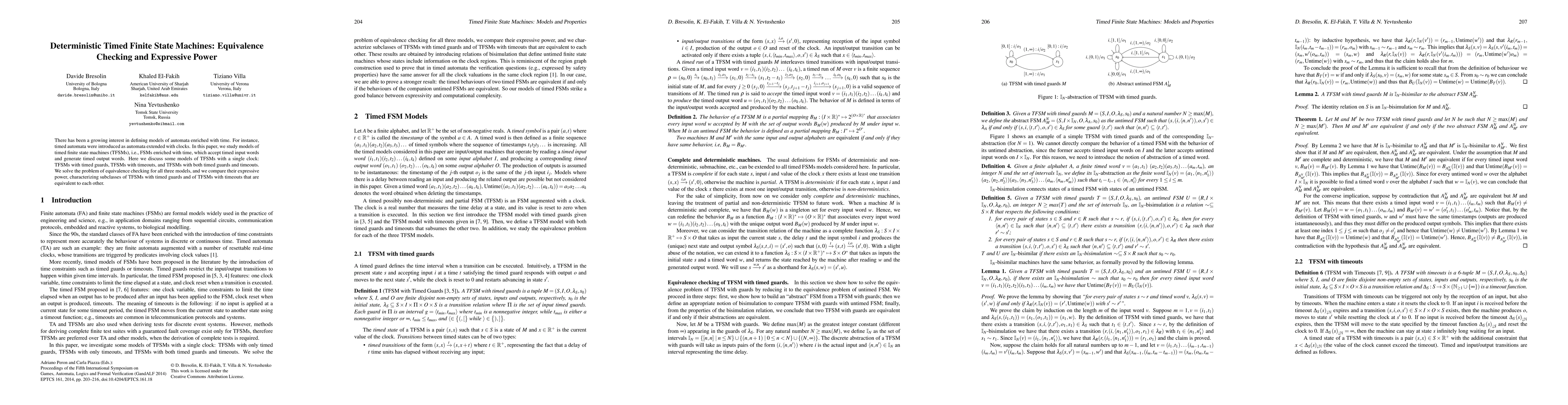 This paper explores various models of timed finite state machines (TFSMs) enriched with time, focusing on TFSMs with timed guards, timeouts, and both. It addresses equivalence checking for these models and compares their expressive power, identifying subclasses of TFSMs that are equivalent in behavior.