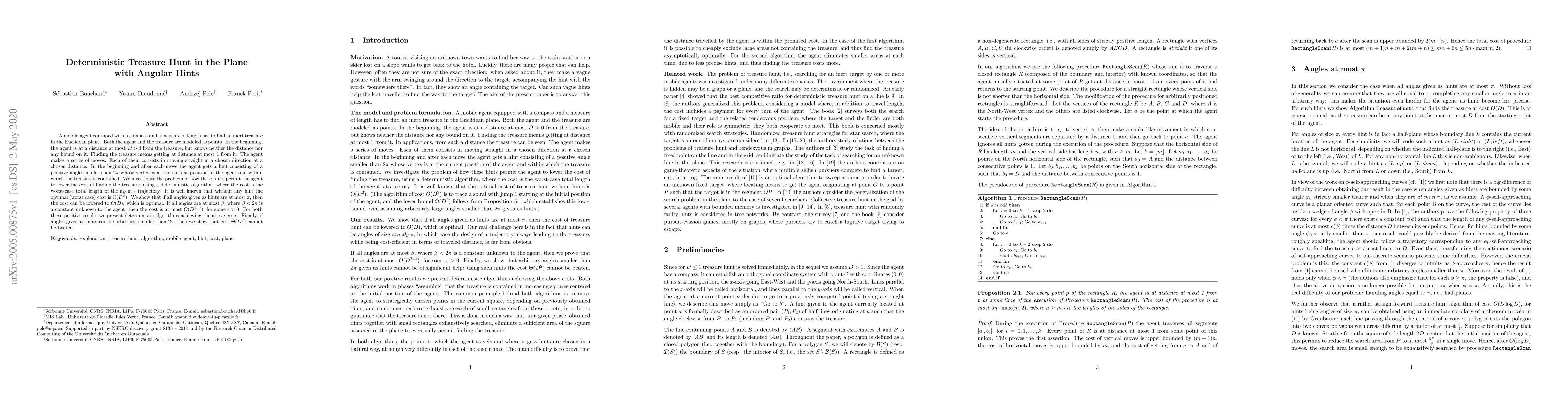 This paper explores a treasure hunt problem where a mobile agent uses angular hints to find a hidden treasure in a plane. It demonstrates that with angular hints of at most $\pi$, the agent can find the treasure with a cost of $O(D)$, significantly reducing the usual $\Theta(D^2)$ cost. For arbitrary hints smaller than $2\pi$, the optimal cost remains $\Theta(D^2)$.