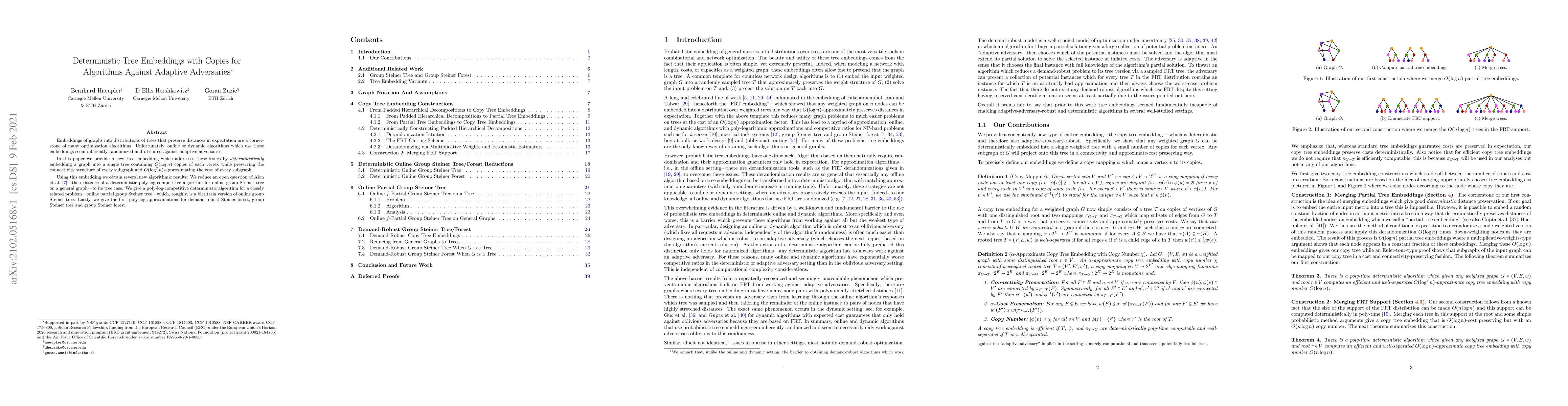 Embeddings of graphs into distributions of trees that preserve distances in expectation are a cornerstone of many optimization algorithms. Unfortunately, online or dynamic algorithms which use these embeddings seem inherently randomized and ill-suited against adaptive adversaries. In this paper we provide a new tree embedding which addresses these issues by deterministically embedding a graph into a single tree containing $O(\log n)$ copies of each vertex while preserving the connectivity structure of every subgraph and $O(\log^2 n)$-approximating the cost of every subgraph. Using this embedding we obtain several new algorithmic results: We reduce an open question of Alon et al. [SODA 2004] -- the existence of a deterministic poly-log-competitive algorithm for online group Steiner tree on a general graph -- to its tree case. We give a poly-log-competitive deterministic algorithm for a closely related problem -- online partial group Steiner tree -- which, roughly, is a bicriteria version of online group Steiner tree. Lastly, we give the first poly-log approximations for demand-robust Steiner forest, group Steiner tree and group Steiner forest.
