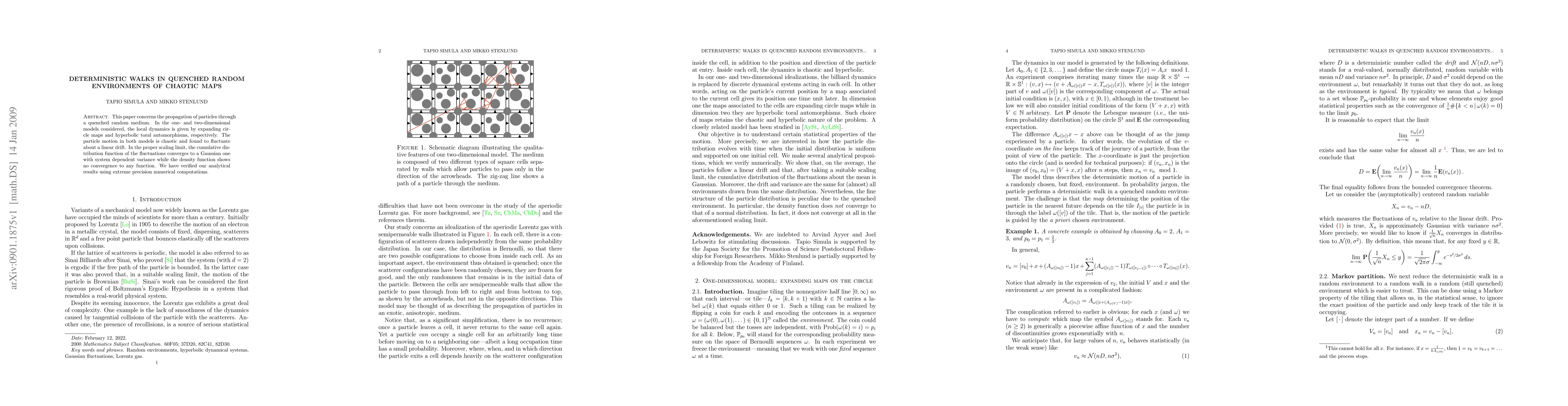 This paper concerns the propagation of particles through a quenched random medium. In the one- and two-dimensional models considered, the local dynamics is given by expanding circle maps and hyperbolic toral automorphisms, respectively. The particle motion in both models is chaotic and found to fluctuate about a linear drift. In the proper scaling limit, the cumulative distribution function of the fluctuations converges to a Gaussian one with system dependent variance while the density function shows no convergence to any function. We have verified our analytical results using extreme precision numerical computations.