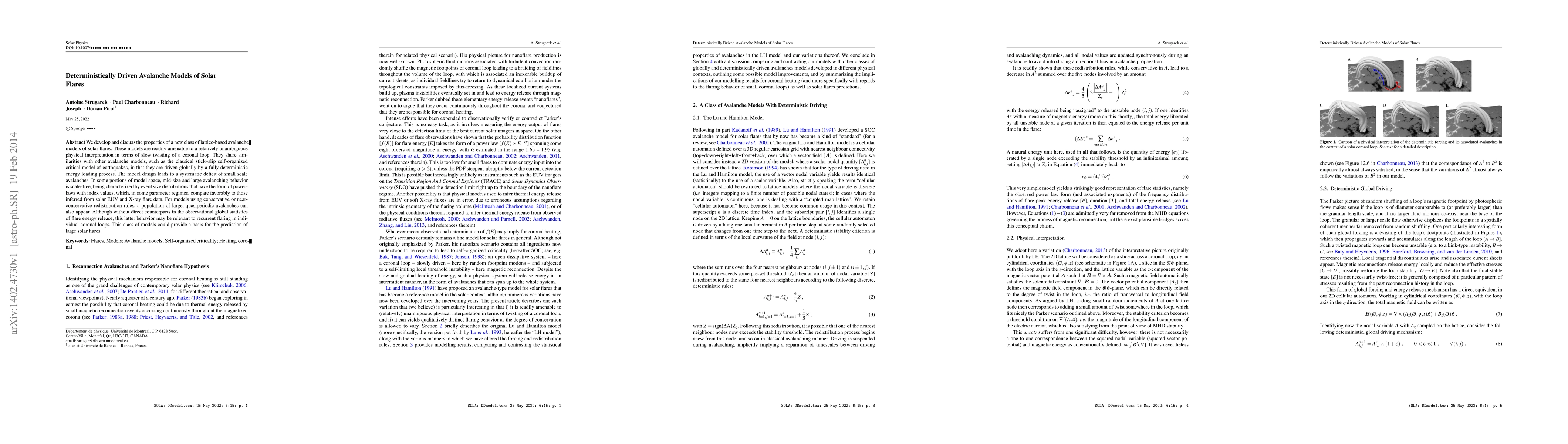 This paper introduces a new deterministic lattice-based avalanche model for solar flares, showing that it can reproduce scale-free mid-size and large flare events with power-law distributions similar to observed solar data. The model also predicts recurrent large flares in coronal loops, potentially aiding in the prediction of significant solar flares.