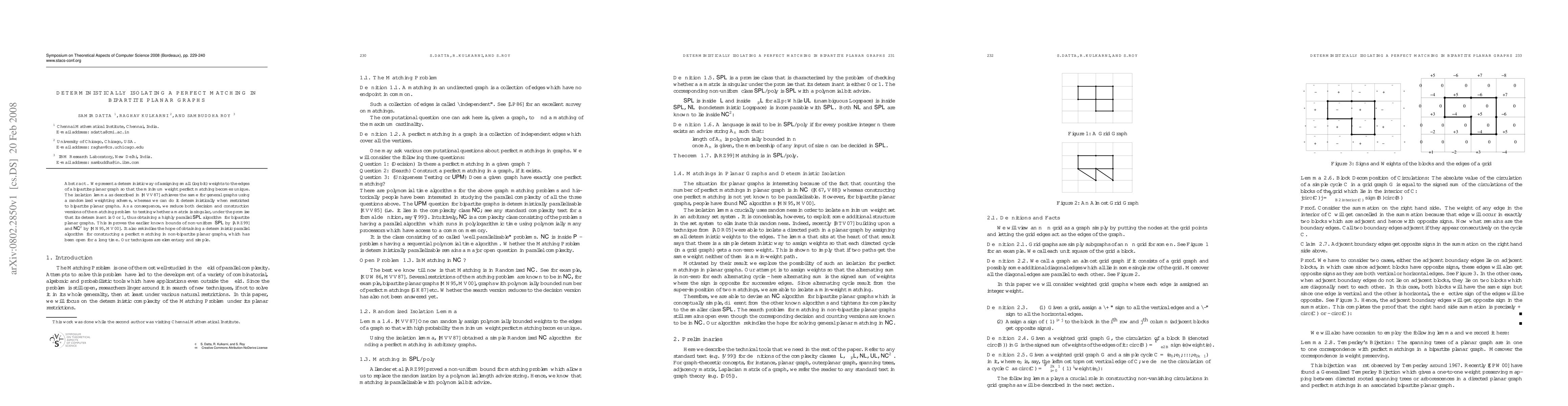 This paper presents a deterministic method for uniquely identifying a minimum weight perfect matching in bipartite planar graphs by assigning small edge weights, improving upon the randomized isolation lemma for general graphs. It also leads to a highly parallel algorithm for solving matching problems in these graphs.