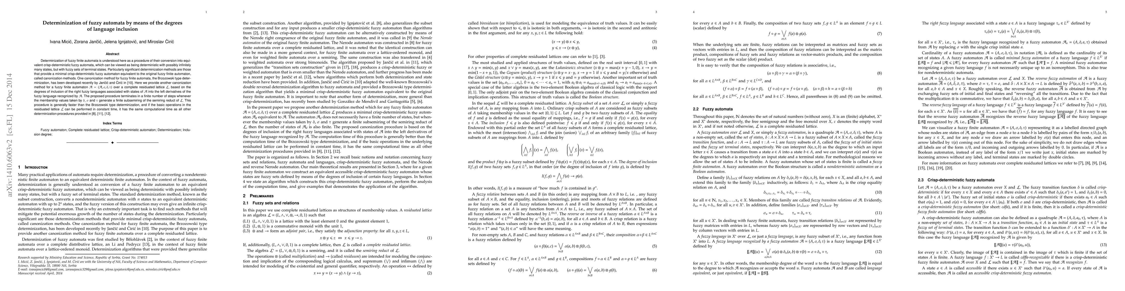 This paper proposes a new canonization method for determinizing fuzzy finite automata by utilizing the degrees of language inclusion. The method is generally faster than the Brzozowski type determinization and achieves the same computational time as other methods if basic operations in the residuated lattice can be performed in constant time.